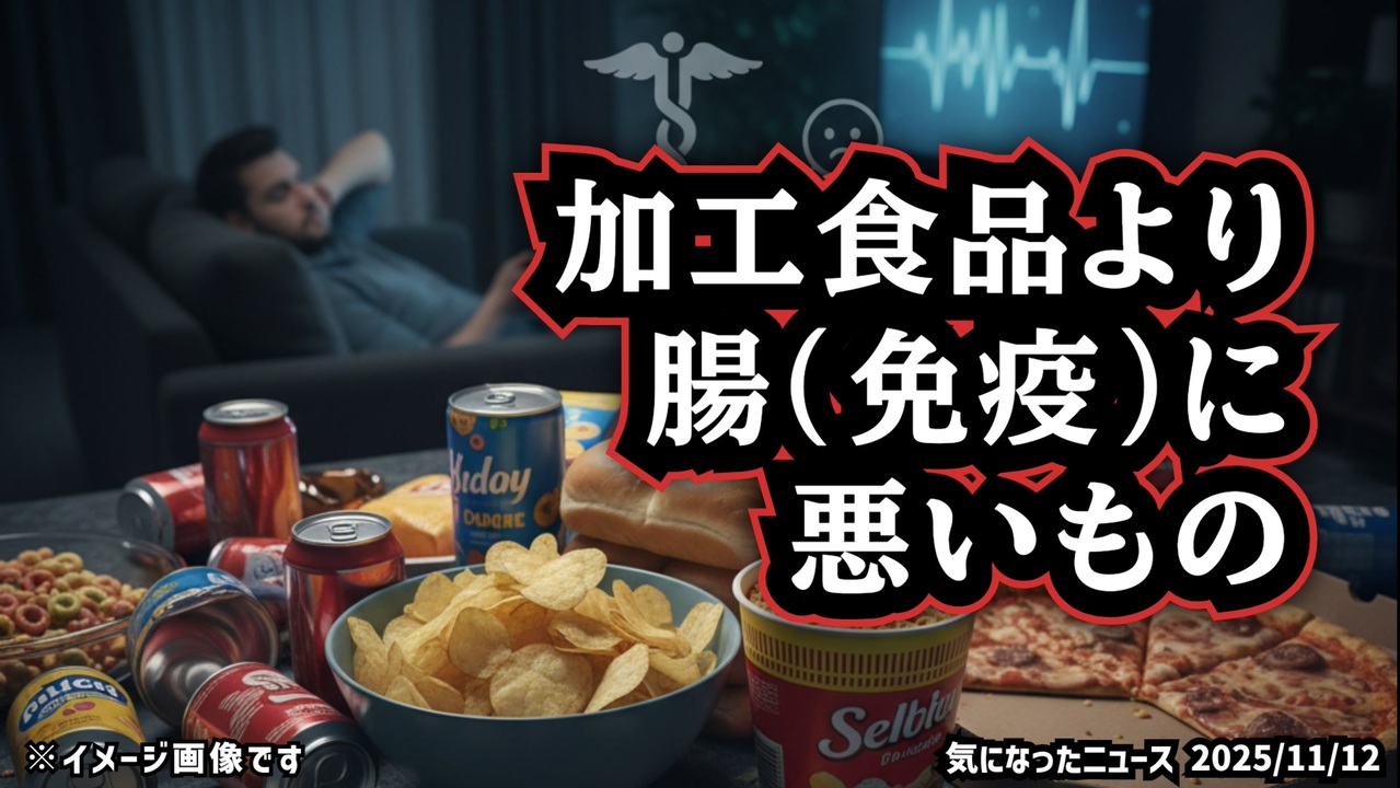 ◆知らないうちに免疫の70%が崩れていく加工食品よりも腸(免疫)に悪いもの ~ 腸は免疫の要です<br><br>あらすじ<br>私たちが毎日口にしているもの。<br>超加工食品、植物油、添加物、農薬――。<br>それらが腸を炎症させ、免疫の7割を乱しています。<br><br>でも本当に怖いのは、その上にある“薬”。<br>健康のために飲んでいるはずの薬が、<br>実は腸を3倍も傷つけている。<br><br>「治す」ために飲んでいるのに、<br>腸内細菌を壊し、体のバランスを崩してしまう。<br><br>アメリカの名医が言った言葉が、心に刺さります。<br>「まず、すべての薬をやめさせろ。<br>ほとんどの病気は、それだけで良くなる。」<br><br>いまの日本、病人が増える理由。<br>その答えは、もう見えているのかもしれません。<br><br><br>◆今回の台本(詳細)<a href="https://keiichiro8140.hatenablog.com/entry/25111222333999" target="_blank" rel="noopener nofollow">https://keiichiro8140.hatenablog.com/entry/25111222333999</a><br><br>◆これまでの動画<a href="https://x.gd/sPXoJ" target="_blank" rel="noopener nofollow">https://x.gd/sPXoJ</a><br><br>◆もしも(BAN)の時のためのマイリンク集<a href="https://lit.link/K16_888" target="_blank" rel="noopener nofollow">https://lit.link/K16_888</a><br><br>ご覧いただきありがとうございます<br>m(_ _)m<br>気になったニュース 2025/11/12<br><br />著作権、肖像権に配慮して作成しております。<br><br>◆気になったニュースの台本!?<br>メモ代わりに作った台本をそのままあげてます<br><a href="https://keiichiro8140.hatenablog.com/." target="_blank" rel="noopener nofollow">https://keiichiro8140.hatenablog.com/.</a><br><br><br>ここからはシリーズ紹介<br><br><br>◆ ワクチン解毒・デトックス<br><a href="https://x.gd/fZweg" target="_blank" rel="noopener nofollow">https://x.gd/fZweg</a><br><br>◆ウイリアム・マキス博士のがん治療(イベルメクチン・フェンベンダゾール等)<br><a href="https://x.gd/AtFYS" target="_blank" rel="noopener nofollow">https://x.gd/AtFYS</a><br><br>◆予防接種健康被害救済制度<br><a href="https://x.gd/0xK9x" target="_blank" rel="noopener nofollow">https://x.gd/0xK9x</a><br><br>◆気になったニュース #1501~<br><br>◆ 【ショートver】気になったニュース<br><a href="https://x.gd/7MxXC" target="_blank" rel="noopener nofollow">https://x.gd/7MxXC</a><br><br>◆ 気になったニュース #1001~<br><a href="https://x.gd/Lp8gv" target="_blank" rel="noopener nofollow">https://x.gd/Lp8gv</a><br><br>◆ 気になったニュース #501~<br><a href="https://x.gd/EmbS4" target="_blank" rel="noopener nofollow">https://x.gd/EmbS4</a><br><br>◆ 気になったニュース #1~#500<br><a href="https://x.gd/uPhNb" target="_blank" rel="noopener nofollow">https://x.gd/uPhNb</a><br><br>◆ X(旧Twitter)・テレグラムで気になった情報<br><a href="https://x.gd/YG6FT" target="_blank" rel="noopener nofollow">https://x.gd/YG6FT</a><br><br>◆ 日比谷5万人パレードデ⚪生放送アーカイブ動画<br><a href="https://x.gd/3CHJv" target="_blank" rel="noopener nofollow">https://x.gd/3CHJv</a><br><br>◆日比谷5万人パレード⚪モのマイリスト作ってみました<br><a href="https://nico.ms/mylist/76828848?ref=sp_other" target="_blank" rel="noopener nofollow">https://nico.ms/mylist/76828848?ref=sp_other</a><br><br>◆3.30 令和の百姓⚪⚪<br><a href="https://www.nicovideo.jp/series/511791?ref=garage_share_other" target="_blank" rel="noopener nofollow">https://www.nicovideo.jp/series/511791?ref=garage_share_other</a><br><br>◆ 及川幸久さんの【XNEWS】シリーズ<br><a href="https://x.gd/3k78K" target="_blank" rel="noopener nofollow">https://x.gd/3k78K</a><br><br>◆これまでの動画<a href="https://x.gd/sPXoJ" target="_blank" rel="noopener nofollow">https://x.gd/sPXoJ</a><br><br>◆もしも(BAN)の時のためのマイリンク集<a href="https://lit.link/K-16_News44" target="_blank" rel="noopener nofollow">https://lit.link/K-16_News44</a><br><br>