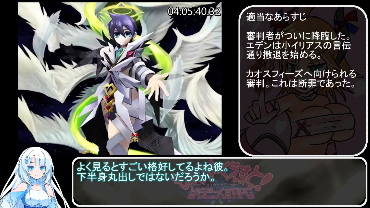 もんむす・くえすと!ぱらどっくすRPG終章 Ver3.04<br>コンバートなし<br><br>レギュ補足<br>難易度変更の禁止<br>ルーラールーラー使用禁止<br>システムデータは空っぽの状態で始める<br><br>前<a href="https://www.nicovideo.jp/watch/sm45586595" class="watch">sm45586595</a><br>次<a href="https://www.nicovideo.jp/watch/sm45664228" class="watch">sm45664228</a><br><br>区間<br>天界の破壊者終了 から 魔界の審判終了 まで<br><br>なんか興が乗ったからとしか言いようがない作業スピード出た<br><br><span style="color: #ff0000; font-size: 18px;">ご視聴の注意<br>もんぱらの深刻なネタバレがあります<br>ゲームプレイ後の視聴を推奨いたします</span><br><br><span style="color: #262626; font-size: 13px;">計測区間 NEWGAME選択から エンディングのタイトルロゴが表示された 瞬間まで</span><br><br><span style="color: #262626; font-size: 13px;">もんぱら用まいりすと<a href="https://www.nicovideo.jp/mylist/62081897" target="_blank" rel="noopener">mylist/62081897</a></span><br>BLACKSOULSⅡ<a href="https://www.nicovideo.jp/mylist/63878502" target="_blank" rel="noopener">mylist/63878502</a><br><span style="color: #262626; font-size: 13px;">BLACKSOULS </span><a href="https://www.nicovideo.jp/mylist/59887561" target="_blank" rel="noopener">mylist/59887561</a><br>その他<a href="https://www.nicovideo.jp/mylist/63112367" target="_blank" rel="noopener">mylist/63112367</a><br><br><br>実はもんぱらのdiscordサーバー作ってます。<br>なんか語りたい人がいたらどうぞ。<br><a href="https://discord.gg/MspJUkHYBn" target="_blank" rel="noopener nofollow">https://discord.gg/MspJUkHYBn</a><br><br><br>VOICEVOX:whitecul<br>