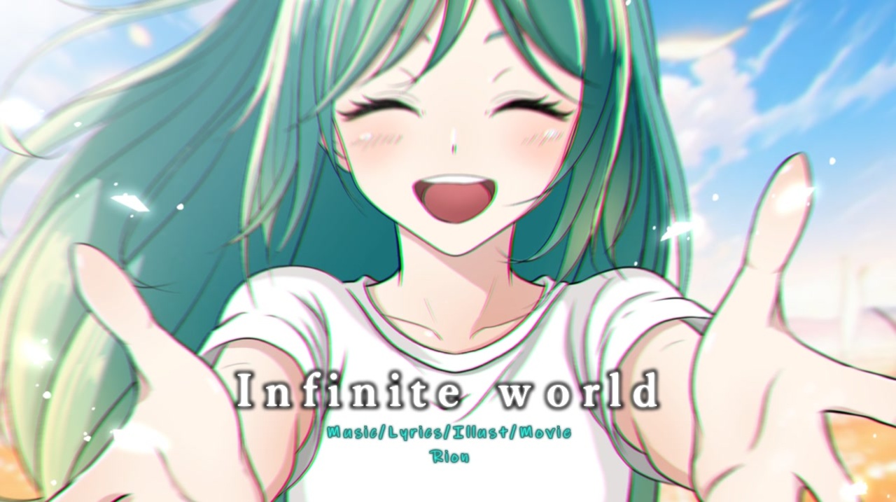 本日爆誕しました!<br><br>この界隈で出逢ったみなさんへ感謝と敬愛を込めて作った曲です。<br><br>思い立って音楽活動を始め、身一つで世界に飛び込み<br>界隈のみんなとは、音を通して出会って、繋がって<br>良い事も悲しい事も、様々な経験をして成長できたなぁと<br><br>何かを作るという事は、無限の世界の広がりだし<br>完璧に完成する事がないから、永遠の未完成を楽しんでいきたいです。<br><br>みなさまの暖かい誕生日コメントが最高のプレゼントです!<br>1分ちょいの短い曲なので、お気軽に聴いていってくださいね( ⁎ᵕᴗᵕ⁎ )<br><br>◆作詞/作曲/絵/映像:Rion(凛音P)<br>作詞、作曲、イラスト、映像の全編をぼっちで制作の限界社畜系OLボカロPです。<br>まったり制作していきますので、これからも末永くよろしくお願いします!<br><br>「Infinite World 」<br>ボクらは音と出逢いこの世界と繋がったんだ <br><br><歌詞><br>静まった部屋クリック音 <br>響く午前2時<br>光る画面 視界の端に<br>流れてく誰かの <br>いいね<br><br>毎日どこか生まれる<br>新しいフレーズたちは<br>孤独も歓喜も和音になって<br>緩やかに繋がって<br>音の海に溶け出して往くよ<br><br>嗚呼 <br>ボクらは音と出会い響き<br>この世界と繋がったんだ<br>Fill in and send<br>指先で奏でるリズム<br>アップロード<br>紡ぐそれぞれのストーリー<br><br>嗚呼 <br>ボクらは永遠に未完成だから<br>不完全なまま進んでいくんだ<br>アップデートして続く<br>それぞれのストーリーを