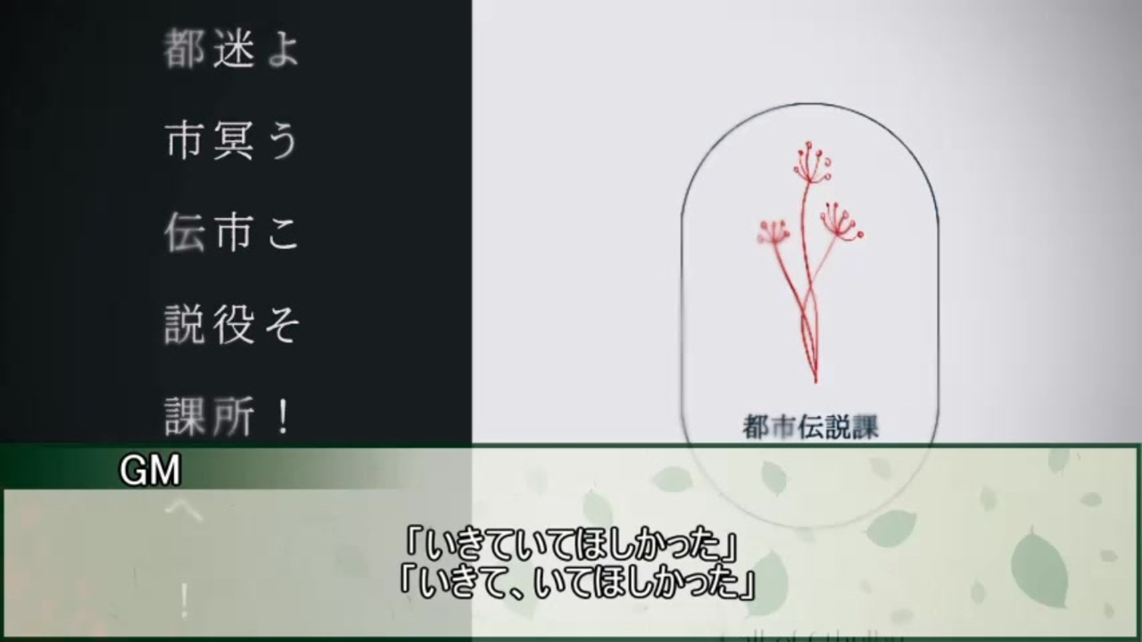 『ようこそ!迷冥市役所都市伝説課へ!』はR18シナリオです。<br>18歳未満の方はブラウザバックしてください。<br><br>今回のGMはあめらるさん(<a href="https://twitter.com/arunanoko64" target="_blank" rel="noopener nofollow">https://twitter.com/arunanoko64</a> )にやっていただきました!ありがとうございます。<br>PL<br>ナギサ:もすい。さん⇒<a href="https://www.nicovideo.jp/user/1631926" target="_blank" rel="noopener">user/1631926</a><br>蒼海:ニコライ・ボルコフ<br><br><strong>本動画はプラネタリウム様作シナリオを使用しており、ネタバレがあります</strong>(動画化のご許可いただいています。)<br><strong>シナリオ販売ページ→ <a href="https://sabaku-yozora.booth.pm/items/2432227" target="_blank" rel="noopener nofollow">https://sabaku-yozora.booth.pm/items/2432227</a> </strong><br><br><br>本作は、「 株式会社アークライト 」及び「株式会社KADOKAWA」が権利を有する『クトゥルフ神話TRPG』の二次創作物です。<br>クトゥルフマイリスト→<a href="https://www.nicovideo.jp/mylist/56026012" target="_blank" rel="noopener">mylist/56026012</a><br>投稿したTRPG動画第一話集→<a href="https://www.nicovideo.jp/mylist/53857218" target="_blank" rel="noopener">mylist/53857218</a><br>Twitter→<a href="https://twitter.com/nikoraiTRPG" target="_blank" rel="noopener nofollow">https://twitter.com/nikoraiTRPG</a><br>読めない卓LINEスタンプ→<a href="https://store.line.me/stickershop/product/19478731/ja?utm_source=gnsh_stickerDetail" target="_blank" rel="noopener nofollow">https://store.line.me/stickershop/product/19478731/ja?utm_source=gnsh_stickerDetail</a><br>YouTubeチャンネル→<a href="https://www.youtube.com/channel/UCx75tsELw0rmXG5i2_sXf4g?view_as=subscriber" target="_blank" rel="noopener nofollow">https://www.youtube.com/channel/UCx75tsELw0rmXG5i2_sXf4g?view_as=subscriber</a><br><br>お借りした素材元様<br>あやえも研究所様<br>Copyright © Nihon Falcom Corporation<br>ニコニココモンズの皆様