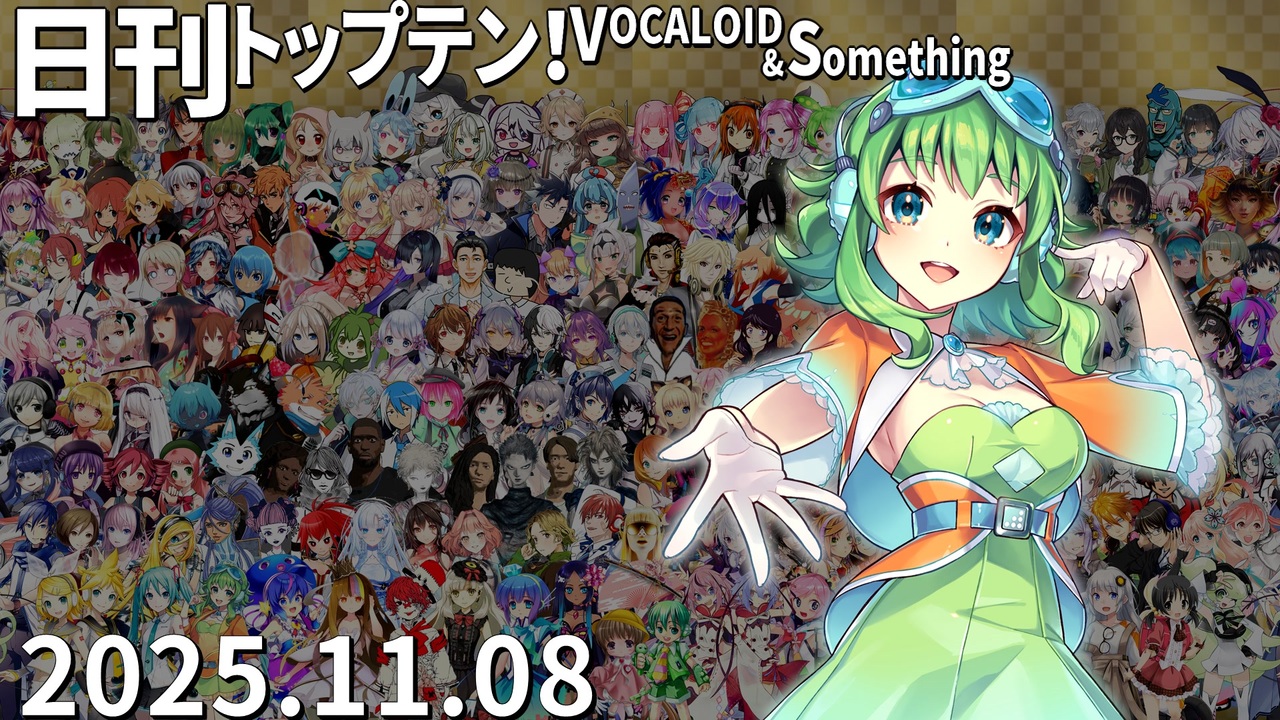 前日(11/7)←<a href="https://www.nicovideo.jp/watch/sm45625128" class="watch">sm45625128</a> <a href="https://www.nicovideo.jp/watch/sm45629100" class="watch">sm45629100</a>→翌日(11/9)<br>★Mixi2にもいます。<a href="https://mixi.social/@LUKANAN_P" target="_blank" rel="noopener nofollow">https://mixi.social/@LUKANAN_P</a><br><br>★チャプター<br>昨日1位<a href="#" class="seekTime" data-seekTime="0:00" onclick="seekNicoPlayer('#0:00'); return false;">#0:00</a> TOP10<a href="#" class="seekTime" data-seekTime="0:36" onclick="seekNicoPlayer('#0:36'); return false;">#0:36</a> 1年前<a href="#" class="seekTime" data-seekTime="2:56" onclick="seekNicoPlayer('#2:56'); return false;">#2:56</a> TOP3<a href="#" class="seekTime" data-seekTime="3:24" onclick="seekNicoPlayer('#3:24'); return false;">#3:24</a> 10年前<a href="#" class="seekTime" data-seekTime="4:55" onclick="seekNicoPlayer('#4:55'); return false;">#4:55</a> PICKUP<a href="#" class="seekTime" data-seekTime="5:23" onclick="seekNicoPlayer('#5:23'); return false;">#5:23</a> <br><br>★トップテン<br>10:<a href="https://www.nicovideo.jp/watch/sm45575984" class="watch">sm45575984</a> 9:<a href="https://www.nicovideo.jp/watch/sm45592661" class="watch">sm45592661</a> 8:<a href="https://www.nicovideo.jp/watch/sm45596269" class="watch">sm45596269</a> 7:<a href="https://www.nicovideo.jp/watch/sm45591413" class="watch">sm45591413</a> <br>6:<a href="https://www.nicovideo.jp/watch/sm45577432" class="watch">sm45577432</a> 5:<a href="https://www.nicovideo.jp/watch/sm45598689" class="watch">sm45598689</a> 4:<a href="https://www.nicovideo.jp/watch/sm45585887" class="watch">sm45585887</a> 3:<a href="https://www.nicovideo.jp/watch/sm45598609" class="watch">sm45598609</a> 2:<a href="https://www.nicovideo.jp/watch/sm45595507" class="watch">sm45595507</a> 1:<a href="https://www.nicovideo.jp/watch/sm45571103" class="watch">sm45571103</a> <br><br>★ピックアップ(B~Dは超新着枠)<br>B:<a href="https://www.nicovideo.jp/watch/sm45599156" class="watch">sm45599156</a> C:<a href="https://www.nicovideo.jp/watch/sm45590751" class="watch">sm45590751</a> D:<a href="https://www.nicovideo.jp/watch/sm45592981" class="watch">sm45592981</a> E:<a href="https://www.nicovideo.jp/watch/sm45588204" class="watch">sm45588204</a> F:<a href="https://www.nicovideo.jp/watch/sm45582078" class="watch">sm45582078</a> G:<a href="https://www.nicovideo.jp/watch/sm45590547" class="watch">sm45590547</a> <br>H:<a href="https://www.nicovideo.jp/watch/sm45589880" class="watch">sm45589880</a> I:<a href="https://www.nicovideo.jp/watch/sm45577753" class="watch">sm45577753</a> J:<a href="https://www.nicovideo.jp/watch/sm45556726" class="watch">sm45556726</a> K:<a href="https://www.nicovideo.jp/watch/sm45579764" class="watch">sm45579764</a> L:<a href="https://www.nicovideo.jp/watch/sm45586399" class="watch">sm45586399</a> M:<a href="https://www.nicovideo.jp/watch/sm45473842" class="watch">sm45473842</a> <br>N:<a href="https://www.nicovideo.jp/watch/sm45506975" class="watch">sm45506975</a> O:<a href="https://www.nicovideo.jp/watch/sm45578795" class="watch">sm45578795</a> P:<a href="https://www.nicovideo.jp/watch/sm45587307" class="watch">sm45587307</a> Q:<a href="https://www.nicovideo.jp/watch/sm45578870" class="watch">sm45578870</a> R:<a href="https://www.nicovideo.jp/watch/sm45577695" class="watch">sm45577695</a> <br><br>★プレイバック <br>A(1年前):<a href="https://www.nicovideo.jp/watch/sm44301514" class="watch">sm44301514</a> 十(10年前):<a href="https://www.nicovideo.jp/watch/sm27546102" class="watch">sm27546102</a> 前日の第1位: <a href="https://www.nicovideo.jp/watch/sm45595808" class="watch">sm45595808</a>(GUMI)<br><br>☆集計対象:2025/11/1~8 5時投稿の作品(11/8 5時集計)<br>★計算式:再生×1+コメント×最大12+いいね!×17+マイリスト×14<br>☆プレイリスト:<u><a href="https://nikkantop10.hatenablog.com/entry/ar20251108" target="_blank" rel="noopener nofollow">https://nikkantop10.hatenablog.com/entry/ar20251108</a></u> 、 <a href="https://www.nicovideo.jp/mylist/49271984" target="_blank" rel="noopener">mylist/49271984</a> <br>★1年前トップテン:<a href="https://www.nicovideo.jp/watch/sm44305358" class="watch">sm44305358</a><br />★日刊トップテン動画一覧マイリスト:<a href="https://www.nicovideo.jp/mylist/47849908" target="_blank" rel="noopener">mylist/47849908</a><br>☆ルールや計算式の詳細:<a href="https://nikkantop10-sub.hatenablog.com/entry/top10_rule" target="_blank" rel="noopener nofollow">https://nikkantop10-sub.hatenablog.com/entry/top10_rule</a><br><span style="color: #262626;">★K!!te Playlist LINK!:<a href="https://kiite.jp/user/AIST_playlist_bot" target="_blank" rel="noopener nofollow">https://kiite.jp/user/AIST_playlist_bot</a><br>☆Twitter:<a href="https://twitter.com/VOCALO_NEWRANK" target="_blank" rel="noopener nofollow">https://twitter.com/VOCALO_NEWRANK</a><br>★Thread:<a href="https://www.threads.net/@lukanan_p" target="_blank" rel="noopener nofollow">https://www.threads.net/@lukanan_p</a></span><br><br><span style="color: #0000ff;"><strong>◆今後の動画投稿イベント情報</strong></span><br>2025/12/29~31 <strong>先端映像音楽表現投稿祭</strong> <a href="https://twipla.jp/events/678401" target="_blank" rel="noopener nofollow">https://twipla.jp/events/678401</a><br>2026/1/1~4 <strong>ボカロサビ投稿祭2026 </strong><a href="https://twipla.jp/events/705936" target="_blank" rel="noopener nofollow">https://twipla.jp/events/705936</a> ※既存曲は新規投稿で参加可<br>2026/1/10~12 <strong>ポストロック投稿祭 </strong><a href="https://twipla.jp/events/694939" target="_blank" rel="noopener nofollow">https://twipla.jp/events/694939</a>