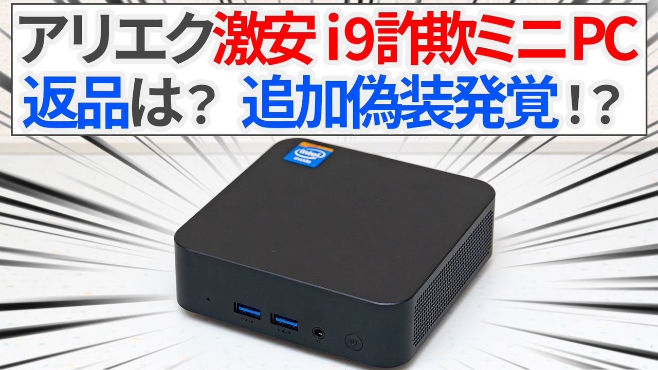 アリエクで購入したi9搭載ミニPCの動画の続編です。<br>返品処理は想像以上に簡単で、大手ECショップから買うメリットを感じました。<br>前回の動画を見ていなくても楽しめますが、より経緯が分かりやすいと思うので、ぜひこちらもご覧ください!<br><a href="https://www.nicovideo.jp/watch/sm45554702" class="watch">sm45554702</a><br><br>■今回登場したPC(購入非推奨)<br><a href="https://ja.aliexpress.com/item/1005009467970263.html" target="_blank" rel="noopener nofollow">https://ja.aliexpress.com/item/1005009467970263.html</a><br><br>■その他の動画<br>「Ryzen5 7430U搭載でまさかの3万円台!アリエクで狙いたい超コスパミニPCをレビュー!」<br>動画:<a href="https://www.nicovideo.jp/watch/sm45613602" class="watch">sm45613602</a><br>製品ページ:<a href="https://s.click.aliexpress.com/e/_c43SeDgB" target="_blank" rel="noopener nofollow">https://s.click.aliexpress.com/e/_c43SeDgB</a><br><br>■Twitter<br><a href="https://twitter.com/midou_pcmovie?t=CswQClbF7dbVc44bT__4JA&s=09" target="_blank" rel="noopener nofollow">https://twitter.com/midou_pcmovie?t=CswQClbF7dbVc44bT__4JA&s=09</a><br><br>■チャプター<br>0:00 導入<br>0:55 SSD容量検証<br>4:52 PCを返品してみた<br>9:09 今回のまとめ<br><br>※上記リンクにはAmazonアソシエイツリンクを使用しています<br>#ゆっくり解説 #ミニPC #corei9