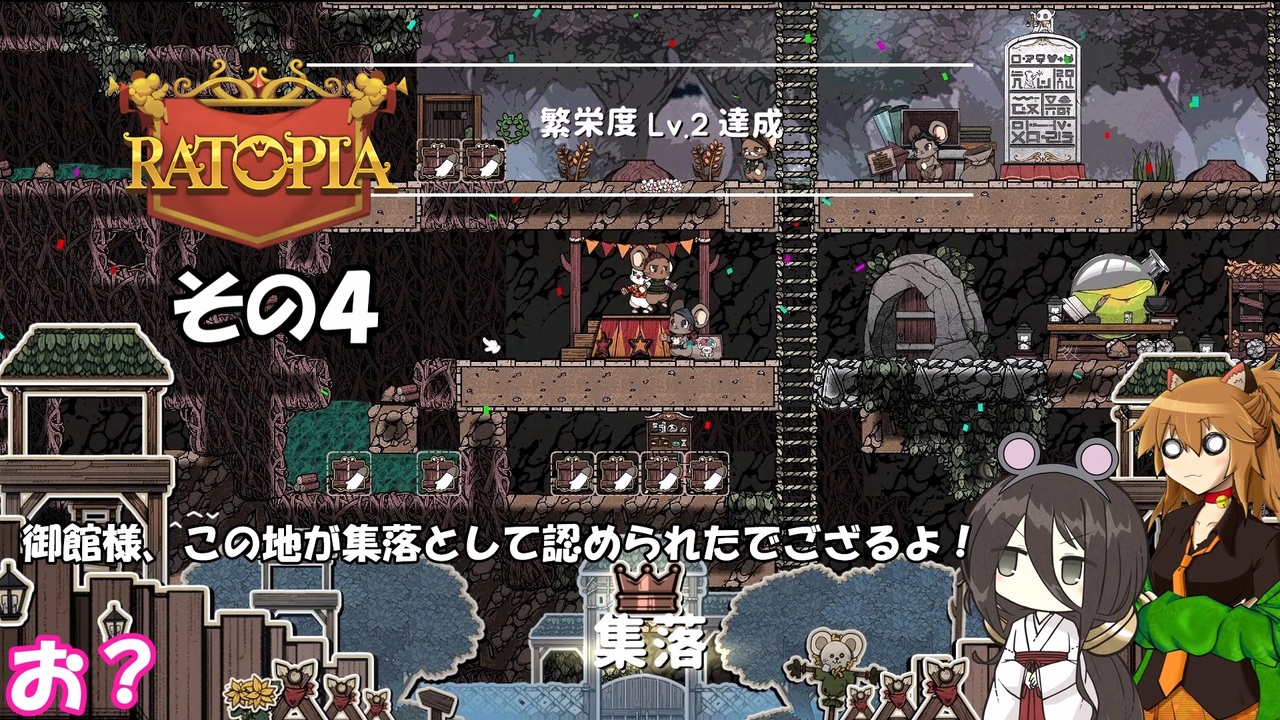 この動画はスチーム版Ratopiaの実況動画です。<br><br>※幾つか難易度を優しくするMODが導入されております。<br>また、高確率で失踪予定!<br>(なにせ何度かプレイして全部襲撃全滅ENDしておりますゆえ)<br><br><br><a href="https://www.nicovideo.jp/watch/sm45625641" class="watch">sm45625641</a> ← 前 次 → <a href="https://www.nicovideo.jp/watch/sm45633028" class="watch">sm45633028</a><br>その1リスト →<a href="https://www.nicovideo.jp/mylist/58364125" target="_blank" rel="noopener">mylist/58364125</a> <br><br>VOICEVOX:春日部つむぎ(ネコ耳) 九州そら(山城) 雨晴はう(妖夢)<br> 青山龍星(ドラムカン) 東北きりたん(東北きりたん)<br> あいちゃん(中国うさぎ(立ち絵:akihiyo様作 立ち中国うさぎ素材 <a href="https://seiga.nicovideo.jp/seiga/im11211212" target="_blank" rel="noopener">im11211212</a>))<br>Voiceroid:東北きりたん(立ち絵:このりEX様作 東北きりたん立ち絵素材5 <a href="https://seiga.nicovideo.jp/seiga/im10819054" target="_blank" rel="noopener">im10819054</a>)<br>