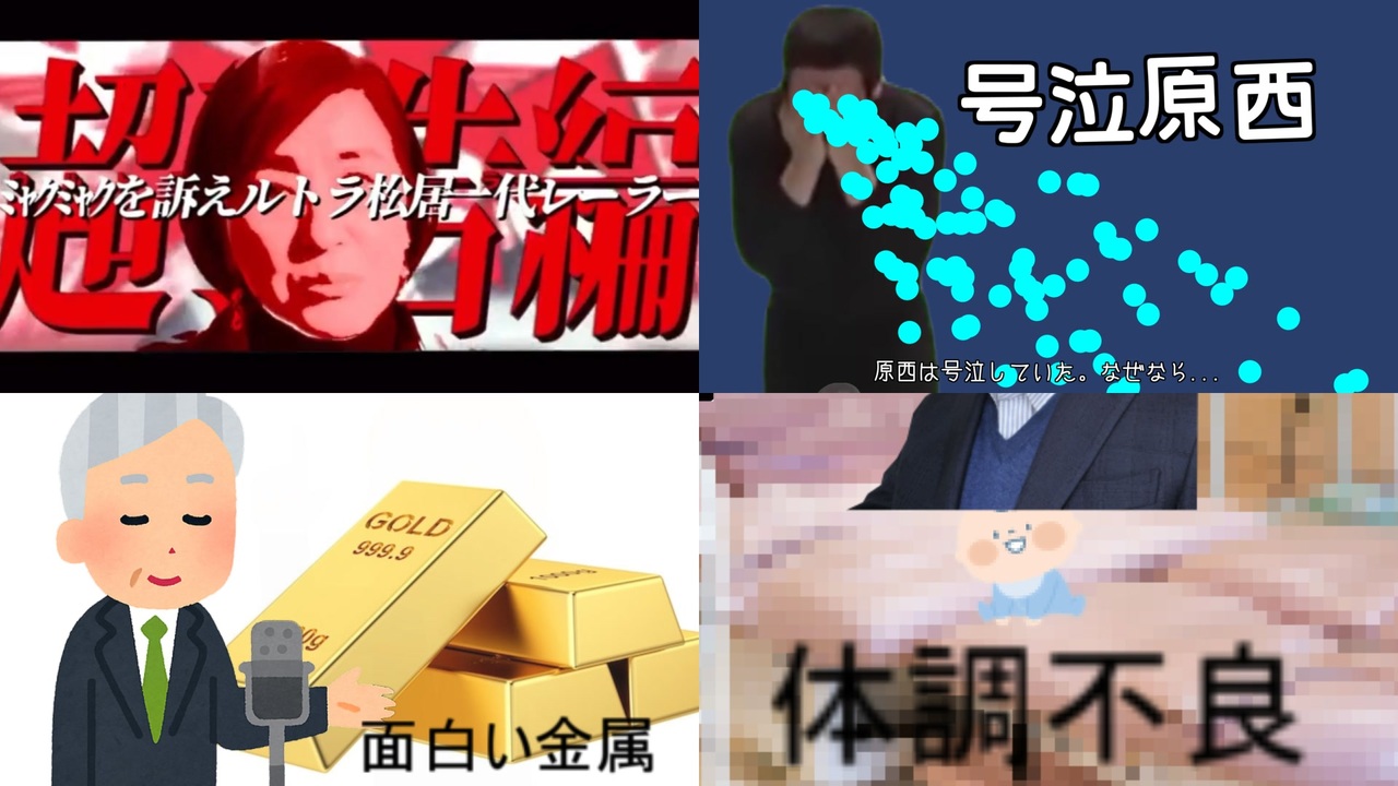 「じゃれ本」という協力して小説を作るゲームで遊び、その中で生まれた物語をもとに、メンバーそれぞれが1話ずつ動画を制作しました。<br><br>テーマ「めくる→わたす→つむぐ→またつむぐ」<br><br>ばゆばゆ(<a href="https://www.nicovideo.jp/user/89261991" target="_blank" rel="noopener">user/89261991</a>)<br>-『体調不良』、ブリッジA(こんにちは)、映像まとめ<br><br>すももも(<a href="https://www.nicovideo.jp/user/129814659" target="_blank" rel="noopener">user/129814659</a>)<br>-『号泣原西』<br><br>お菓子太郎(<a href="https://www.nicovideo.jp/user/125494597" target="_blank" rel="noopener">user/125494597</a>)<br>-『面白い金属』、ブリッジB・C(だーれだ?)、音声まとめ<br><br>Ni(<a href="https://www.nicovideo.jp/user/139560867" target="_blank" rel="noopener">user/139560867</a>)<br>-『ミャクミャクを訴えルトラ松居一代レーラー』<br>