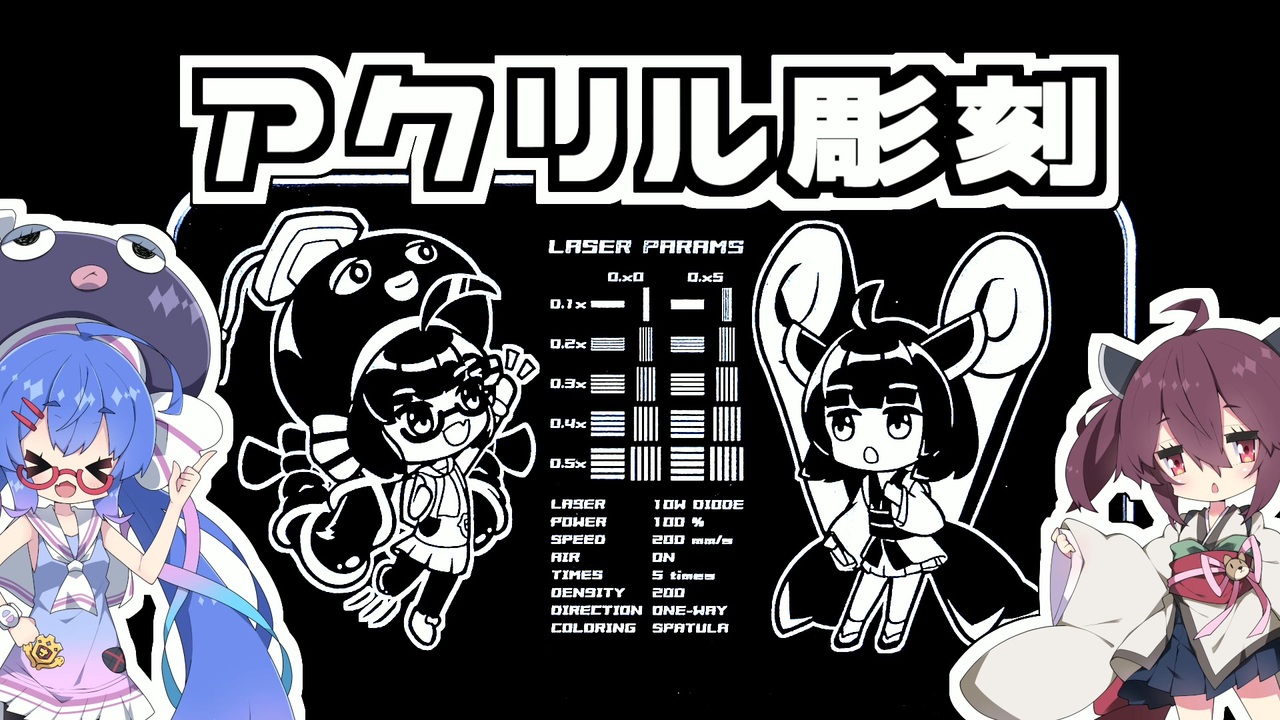 データ詳細 【VOICEROID】ウナきり、光るアクリル彫刻【作ってみた】