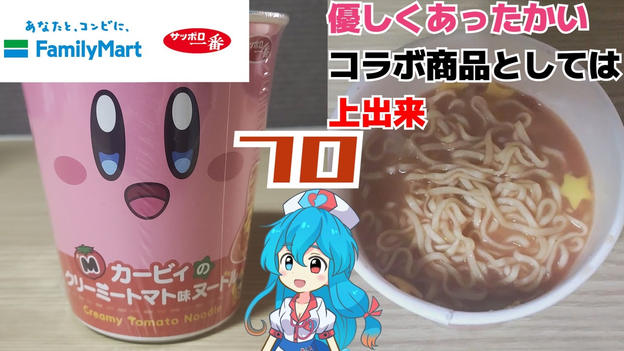 トマトでクリーミーなカップ麺を食べていくのです(雨晴はう)<br><br>【カービィたちの超まんぞくフェス】星のカービィ クリーミートマト味ヌードル|商品情報|ファミリーマート; <a href="https://www.family.co.jp/goods/processed_foods/3814833.html" target="_blank" rel="noopener nofollow">https://www.family.co.jp/goods/processed_foods/3814833.html</a><br>星のカービィ クリーミートマト味ヌードル | 星のカービィポータル; <a href="https://www.kirby.jp/goods_item/22822/" target="_blank" rel="noopener nofollow">https://www.kirby.jp/goods_item/22822/</a><br>ファミマでこころもおなかも満たしちゃおう! 11月11日(火)から「カービィたちの超まんぞくフェス」開催! 第1弾は生ハム寿司やりんご蒸しパンなどコラボ商品が7種類登場!|ニュースリリース|ファミリーマート; <a href="https://www.family.co.jp/company/news_releases/2025/20251107_01.html" target="_blank" rel="noopener nofollow">https://www.family.co.jp/company/news_releases/2025/20251107_01.html</a><br>カービィのエアライダー | Nintendo Switch 2 | 任天堂; <a href="https://www.nintendo.com/jp/games/switch2/aaaba/index.html" target="_blank" rel="noopener nofollow">https://www.nintendo.com/jp/games/switch2/aaaba/index.html</a>