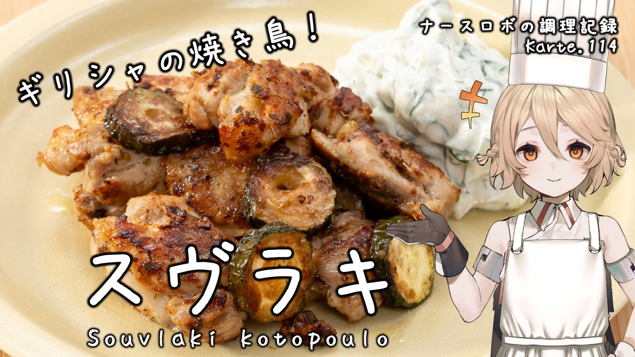Part114はギリシャ料理のスブラキ!<br>本場では串焼きで出されたりするお料理です。<br>今回はギリシャヨーグルトときゅうりで作るディップソース、ザジキもご紹介。<br>爽やかな香りと酸味が美味しいお料理に変化しますよ!<br>ぜひ作ってみてくださいね。<br><br>音声: VOICEVOX:ナースロボ_タイプT<br>立ち絵: 捨て犬A<br>イラスト: いらすとや<br>SE: otologic, 効果音ラボ<br>BGM: BGMer<br /><br>[各種リンク]<br>ニコニコ動画: <a href="http://nicovideo.jp/user/130153578" target="_blank" rel="noopener nofollow">http://nicovideo.jp/user/130153578</a><br>YouTubeメイン(料理): <a href="http://youtube.com/@cooking25euph" target="_blank" rel="noopener nofollow">http://youtube.com/@cooking25euph</a><br>YouTubeサブ(料理以外): <a href="https://youtube.com/@sub25euph" target="_blank" rel="noopener nofollow">https://youtube.com/@sub25euph</a><br>X (twitter): <a href="https://twitter.com/nico25euph" target="_blank" rel="noopener nofollow">https://twitter.com/nico25euph</a><br>Bluesky: <a href="http://nico25euph.bsky.social" target="_blank" rel="noopener nofollow">http://nico25euph.bsky.social</a><br>TikTok: <a href="http://tiktok.com/@nico25euph" target="_blank" rel="noopener nofollow">http://tiktok.com/@nico25euph</a>