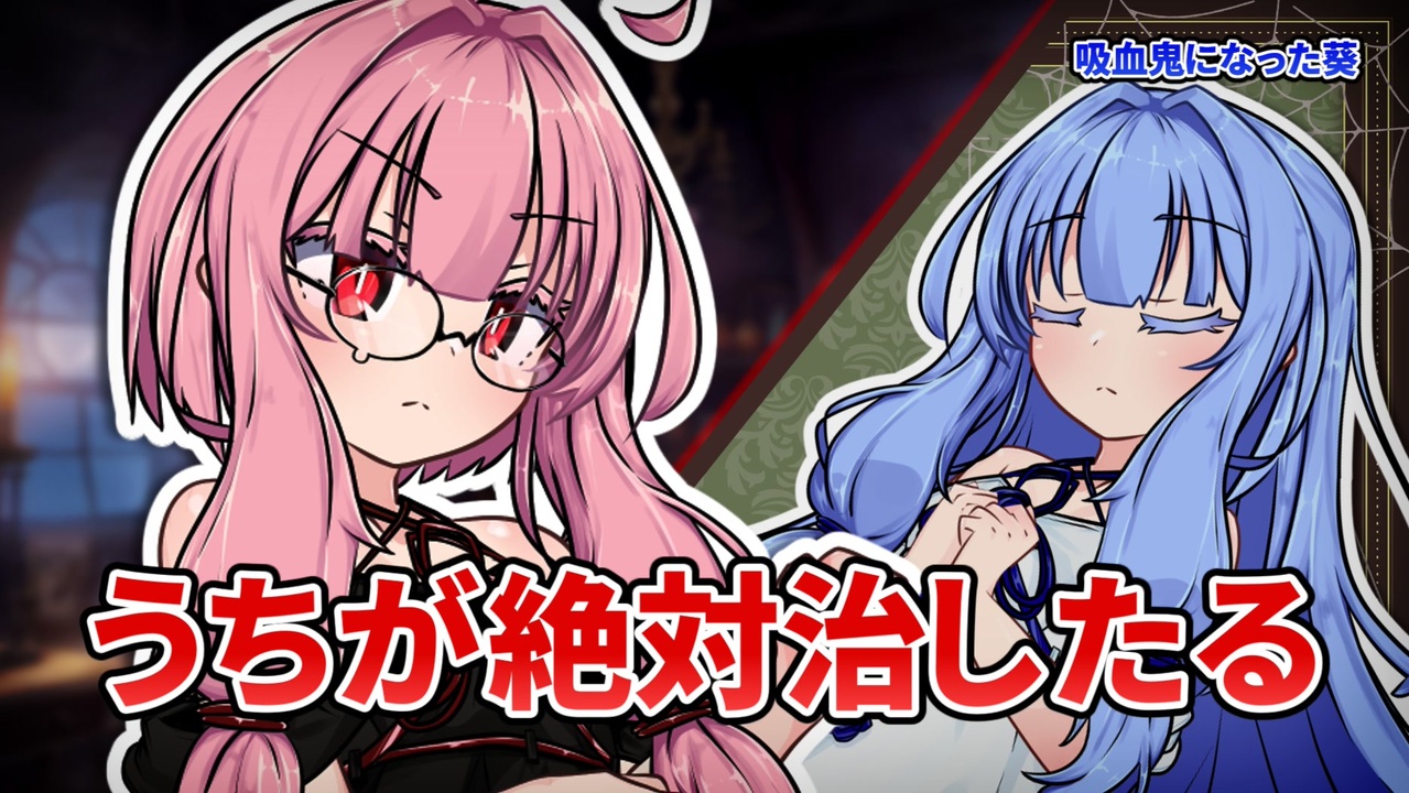 「葵……」な魔女茜ちゃん<br>「お姉ちゃん……」な吸血鬼葵ちゃん<br><br>【素敵なボイス】<br>A.I.VOICE:琴葉茜<br>A.I.VOICE:琴葉葵<br><br>【立ち絵】<br>ぴぴ様<br><a href="https://seiga.nicovideo.jp/seiga/im11484646" target="_blank" rel="noopener nofollow">https://seiga.nicovideo.jp/seiga/im11484646</a><br><a href="https://seiga.nicovideo.jp/seiga/im11483449" target="_blank" rel="noopener nofollow">https://seiga.nicovideo.jp/seiga/im11483449</a><br><br>【BGM】<br>ハロウィンさまよう可愛いおばけたち(にゃるぱかBGM工房様)<br><a href="https://www.youtube.com/watch?v=n1gzIVZ0DV8" target="_blank" rel="noopener nofollow">https://www.youtube.com/watch?v=n1gzIVZ0DV8</a><br>子守り歌(さりい様)<br><a href="https://www.youtube.com/watch?v=1EzcNOy8EoY" target="_blank" rel="noopener nofollow">https://www.youtube.com/watch?v=1EzcNOy8EoY</a><br><br>【背景/素材】<br>イラストAC様<br><a href="https://www.ac-illust.com/" target="_blank" rel="noopener nofollow">https://www.ac-illust.com/</a><br>魔女の家<br><a href="https://www.pixiv.net/artworks/110706956" target="_blank" rel="noopener nofollow">https://www.pixiv.net/artworks/110706956</a><br>OKUMONO様<br><a href="https://sozaino.site/" target="_blank" rel="noopener nofollow">https://sozaino.site/</a><br>ツカッテ様<br><a href="https://tsukatte.com/" target="_blank" rel="noopener nofollow">https://tsukatte.com/</a><br><br>【効果音】<br>効果音ラボ<br><a href="https://soundeffect-lab.info/" target="_blank" rel="noopener nofollow">https://soundeffect-lab.info/</a><br>On-Jin様<br><a href="https://on-jin.com/" target="_blank" rel="noopener nofollow">https://on-jin.com/</a><br>OtoLogic様<br><a href="https://otologic.jp/" target="_blank" rel="noopener nofollow">https://otologic.jp/</a><br>DOVA-SYNDROME様<br><a href="https://dova-s.jp/" target="_blank" rel="noopener nofollow">https://dova-s.jp/</a><br>ポケットサウンド様<br><a href="https://pocket-se.info/" target="_blank" rel="noopener nofollow">https://pocket-se.info/</a><br><br>【アイコンアニメーション】<br>デムサト様<br><a href="https://seiga.nicovideo.jp/seiga/im10778297" target="_blank" rel="noopener nofollow">https://seiga.nicovideo.jp/seiga/im10778297</a>