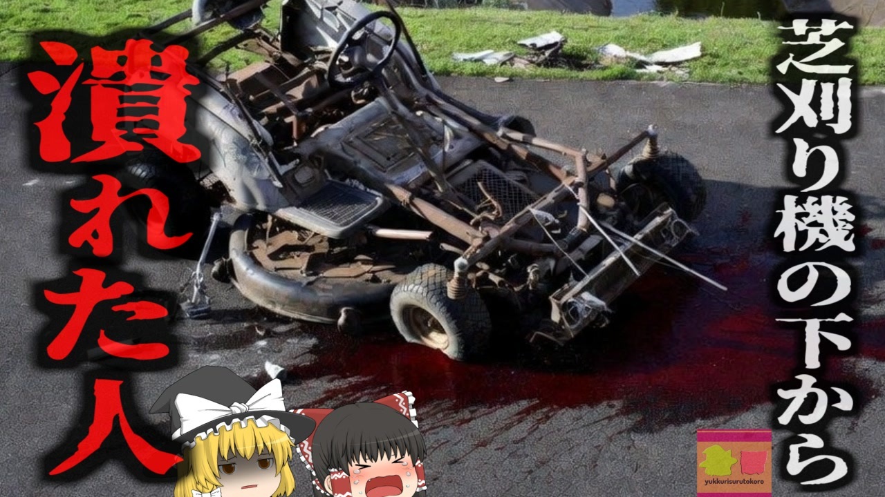 <a href="#" class="seekTime" data-seekTime="00:07" onclick="seekNicoPlayer('#00:07'); return false;">#00:07</a> 視聴上の注意<br><a href="#" class="seekTime" data-seekTime="00:49" onclick="seekNicoPlayer('#00:49'); return false;">#00:49</a> 本編開始<br><a href="#" class="seekTime" data-seekTime="1:23" onclick="seekNicoPlayer('#1:23'); return false;">#1:23</a> 造園業者のベテラン「Aさん」<br><a href="#" class="seekTime" data-seekTime="2:14" onclick="seekNicoPlayer('#2:14'); return false;">#2:14</a> 事故発覚の経緯<br><a href="#" class="seekTime" data-seekTime="3:31" onclick="seekNicoPlayer('#3:31'); return false;">#3:31</a> 死因と事故原因<br><a href="#" class="seekTime" data-seekTime="4:27" onclick="seekNicoPlayer('#4:27'); return false;">#4:27</a> 排水溝がみえなかった?<br><a href="#" class="seekTime" data-seekTime="5:29" onclick="seekNicoPlayer('#5:29'); return false;">#5:29</a> 意外と多い芝刈り機事故<br><a href="#" class="seekTime" data-seekTime="6:52" onclick="seekNicoPlayer('#6:52'); return false;">#6:52</a> 圧迫事故の多さと対策<br><br><br>引用・出展・参考文献(視聴者提供など<br>people<br><a href="https://x.gd/kQi34" target="_blank" rel="noopener nofollow">https://x.gd/kQi34</a><br><br><br />※この動画は過去の事件を知り、現在でも同じことが発生する危険性を再認識、関与しないように促すための動画であり、視聴者を扇動、動揺を誘うためのコンテンツではありません。<br><br>ご要望にお応えして、メンバーシップの開設を行いました。<br>下記URLからも登録可能ですので、ご興味がある方は是非ご参加ください。<br><a href="https://www.youtube.com/channel/UCcT5a1J7XJW7CLYI2RKl4pw/join" target="_blank" rel="noopener nofollow">https://www.youtube.com/channel/UCcT5a1J7XJW7CLYI2RKl4pw/join</a><br><br><br>Twitter<br>→<a href="https://twitter.com/yukkurisurutoko" target="_blank" rel="noopener nofollow">https://twitter.com/yukkurisurutoko</a><br><br>取り急ぎ、簡易的にですがマイリストを作りました。<br>【ゆっくり解説】事故・事件関係紹介リスト <br><a href="https://www.nicovideo.jp/mylist/71034319" target="_blank" rel="noopener nofollow">https://www.nicovideo.jp/mylist/71034319</a><br>【ゆっくり解説】放射線系事故<br><a href="https://www.nicovideo.jp/mylist/71034368" target="_blank" rel="noopener nofollow">https://www.nicovideo.jp/mylist/71034368</a><br>【ゆっくり解説】鉄道系事故・事件関連<br><a href="https://www.nicovideo.jp/mylist/71034379" target="_blank" rel="noopener nofollow">https://www.nicovideo.jp/mylist/71034379</a>