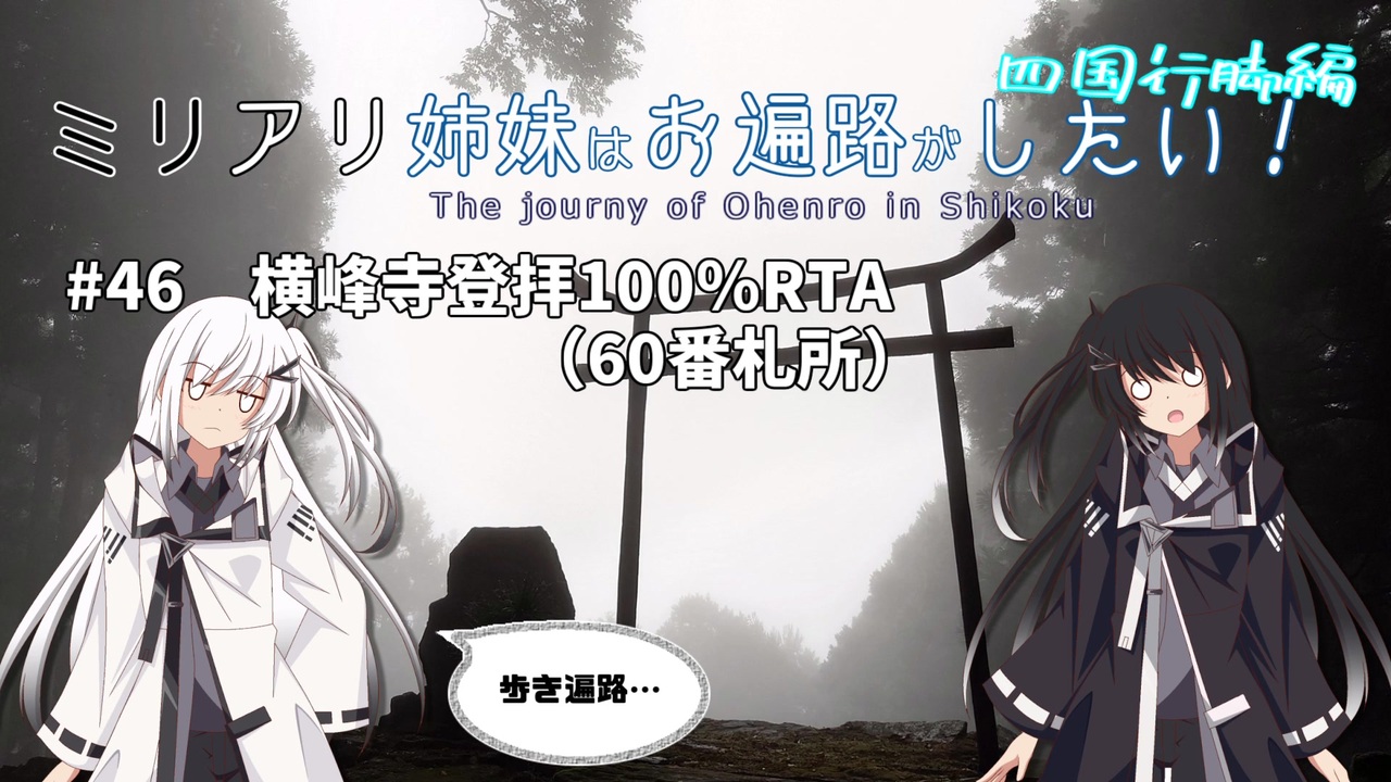 皆様こんにちは。うp主のカヤです。<br><br>ミリアリ姉妹の遍路旅。<br>今回は60番を歩くようですよ。<br>どうして海から登る必要があるんですかね…?<br><br>前→<a href="https://www.nicovideo.jp/watch/sm45539045" class="watch">sm45539045</a><br>次→<a href="https://www.nicovideo.jp/watch/sm45727613" class="watch">sm45727613</a><br><br>距離:<span style="font-size: 16px;"><strong><u>1日目31.5キロ</u></strong></span>、2日目12.9キロ<br><br>◆概要<br>主催:みすいぶ 様<br>動画:【徒歩旅行祭2025】本告知【ユーザー投稿祭】<br>→<a href="https://www.nicovideo.jp/watch/sm45039557" class="watch">sm45039557</a><br><br>お遍路マイリス→<a href="https://www.nicovideo.jp/mylist/71939168" target="_blank" rel="noopener">mylist/71939168</a><br>RTAマイリス→<a href="https://www.nicovideo.jp/mylist/72065377" target="_blank" rel="noopener">mylist/72065377</a><br>バイク車載マイリス→<a href="https://www.nicovideo.jp/mylist/73355837" target="_blank" rel="noopener">mylist/73355837</a><br><br>バイクと登山のつぶやきが多いツイッター<br>→<a href="https://twitter.com/kayanian0725" target="_blank" rel="noopener nofollow">https://twitter.com/kayanian0725</a><br><br>■使用機材<br>Xperia5Ⅳ<br>DJI osmo action4<br>■使用合成音声ソフト<br>CoeFont -アリアル、ミリアル<br>■使用ソフト<br>aviutl<br>PSDToolkit<br>Fire Alpaca