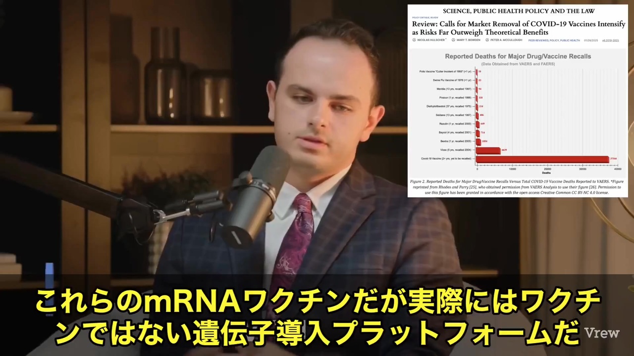 元の動画 → <a href="https://x.com/i/status/1989565630803316988" target="_blank" rel="noopener nofollow">https://x.com/i/status/1989565630803316988</a><br>📢3人で中止の時代から、60万人でも継続”の異常<br><br>アメリカでは1955年<br>🔹ポリオワクチンが10人死亡で即中止。<br>1976年<br>🔹豚インフルエンザワクチンは20〜50人死亡で即中止。<br>1999年<br>🔹ロタウイルスワクチンは15人未満の副作用で即中止。<br><br>そして数週間前のチクングニア熱ワクチンは、<br>🧪たった3人の死亡で自主回収されました。<br><br>…それが常識だったはずなんです。<br><br>でも今なお続いてるmRNAワクチンの「常識破り」はどうでしょう?💉💀<br><br>🇺🇸アメリカ国内だけで、推定50〜60万人が死亡。<br><br>それでも“ワクチン”と称して打ち続けられている…😶🌫️<br><br>この注射は「ワクチン」じゃない、と専門家は語ります。<br>🧬「遺伝子導入プラットフォーム」という、まったく新しい技術。<br><br>それに、何百億ドルという巨額投資が1985年から注ぎ込まれてきた。<br>だからこそ、“簡単に引けない”仕組みになってるんです💸💉💼<br><br>mRNAへの偏愛は、あまりにも根深い<br><br>死者が出ても止まらないこの狂気<br><br>🇯🇵日本もまた、同じレールを走っていませんか…? 11月15日<br><br><br><br><br><a href="https://x.com/w2skwn3" target="_blank" rel="noopener nofollow">https://x.com/w2skwn3</a><br>トッポ<br><br>@w2skwn3<br>趣味は国際政治ですが大学では医学を学びました。テレビの嘘報道にはうんざりしてツイッターで情報交換したいです。