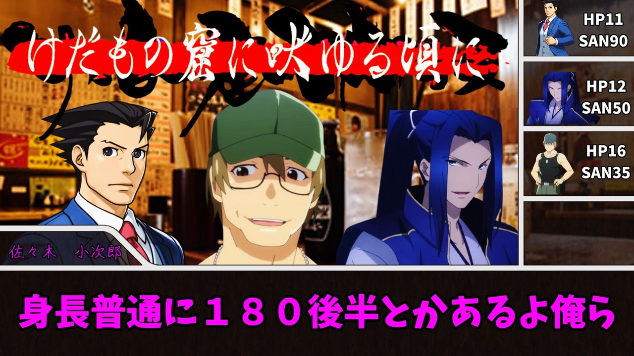 <span style="color: #ff0000; font-size: 18px;"><strong>この動画シリーズはクトゥルフ神話TRPG公式シナリオ『けだもの窟に吠ゆる頃に』のネタバレがございます<br>また、不快な描写がある可能性がございます。お気を付けください</strong></span><br><br><br>シナリオ『けだもの窟に吠ゆる頃に』置き場<br> <a href="https://booth.pm/ja/items/6897815?srsltid=AfmBOoo7s9F_y8AUc4OgfZL4tr6hzfNippcDRQ-92gkT2eixyFNDb5Er" target="_blank" rel="noopener nofollow">https://booth.pm/ja/items/6897815?srsltid=AfmBOoo7s9F_y8AUc4OgfZL4tr6hzfNippcDRQ-92gkT2eixyFNDb5Er</a> <br><br><br>メニ卓のシナリオ置き場:<a href="https://menitati.booth.pm/" target="_blank" rel="noopener nofollow">https://menitati.booth.pm/</a><br><br>本作品は二次創作です<br>本作は、『株式会社KADOKAWA enterbrain』が権利を有する『新クトゥルフ神話TRPG』の二次創作物です<br> 他、イラスト素材の著作権については各イラストレーターに帰属します<br><br><br><br>次:まだ 前シリーズ:<a href="https://www.nicovideo.jp/watch/sm45471458" class="watch">sm45471458</a> part1:これだよ
