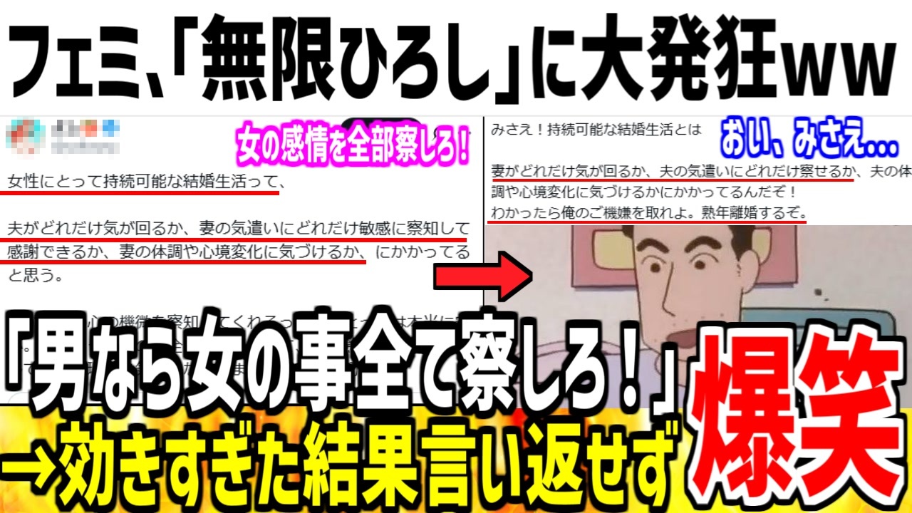 サムネ画像を双葉社 アニメ クレヨンしんちゃんより引用<br><a href="https://x.com/YGTCB7rq4l66623/status/1988895051603234861" target="_blank" rel="noopener nofollow">https://x.com/YGTCB7rq4l66623/status/1988895051603234861</a><br><a href="https://x.com/femimatsu/status/1843441678847213806" target="_blank" rel="noopener nofollow">https://x.com/femimatsu/status/1843441678847213806</a><br />Twitterもフォローお願いします!➡ @yukkuridarkness <br>ブルースカイ➡<a href="https://bsky.app/profile/yukkuridarkness" target="_blank" rel="noopener nofollow">https://bsky.app/profile/yukkuridarkness</a><br><br>.. ※日本の著作権法第32条は、公表された著作物の一部を引用する場合、出典を明示すれば問題ないと定めています。 Article 32 of Japan's Copyright Law stipulates that quoting a part of a published work is not a problem as long as the source of the quotation is clearly stated. ~~~~~~~~~~~~~~~~~~~~~~~~~~~~~~ チャンネル登録よろしくお願い致します!<br><br>お借りした素材様 ・きつね様 ・イラストAC様 ・ニコニ・コモンズ様 ・効果音ラボ ・DOVA-SYNDROME様 <a href="https://dova-s.jp/bgm/play6388.html" target="_blank" rel="noopener nofollow">https://dova-s.jp/bgm/play6388.html</a> ・騒音のない世界様 <a href="https://noiselessworld.net/" target="_blank" rel="noopener nofollow">https://noiselessworld.net/</a> ・MUSMUS様 <a href="https://musmus.main.jp/music_game_05.html" target="_blank" rel="noopener nofollow">https://musmus.main.jp/music_game_05.html</a><br>
