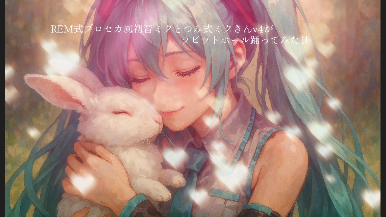 DECO*27さんの人気作ラビットホールをREM式プロセカ風ミクさんとつみ式初音ミクさんに踊ってもらいました。どちらかに絞ろうかとも思ったんですが・・・どちらもよくて絞れなかったです!優柔不断ですね><<br>P.N.朝倉トーンさんの動画に当動画を乗せて頂きました!ありがとうございます><<br>動画再生1000達成できました!!<br>動画を見て下さったみなさん、ニコニコに広告していただいた方々ほんとうにありがとうございました!<br><br>けいたぼさんミーネンロイマーさんゆうりんさんいっぱい広告してくださって感謝ですっ!!<br>オカノさんokiさんGreen.gさん木花佐久夜さんえどーんさんもありがとうございました><<br><br>◆動画をつくるに際して以下のものをお借りしました。<br><br>原曲 DECO*27 - ラビットホール feat. 初音ミク<br><a href="https://www.nicovideo.jp/watch/sm42224358" class="watch">sm42224358</a><br><br>振付元ダンス動画<br>【チャイナ】ラビットホール 踊ってみた【オリジナル振付】<br><a href="https://www.nicovideo.jp/watch/sm42583719" class="watch">sm42583719</a><br><br>MMDモーション<br>【MMDモーキャプMV】ラビットホール【モーション配布】 MobiusP<br><a href="https://www.nicovideo.jp/watch/sm42576784" class="watch">sm42576784</a><br><br>MMD カメラ<br>【MMD-PV】ラビットホール【カメラ配布】 ゆきねこ<br><a href="https://www.nicovideo.jp/watch/sm42581665" class="watch">sm42581665</a><br><br>MMD モデル<br>REM式プロセカ風初音ミク @REMmaple<br><br>つみ式初音ミクv4 つみだんご<br><br>MMD ステージ<br>歪みステージ ku-ya<br><a href="https://seiga.nicovideo.jp/seiga/im5290653" target="_blank" rel="noopener">im5290653</a><br><br>twist ステージ 砂P<br><a href="https://seiga.nicovideo.jp/seiga/im10544528" target="_blank" rel="noopener">im10544528</a><br><br>ハートと歯車ステージ(一護牛乳(銀時愛P)<br><a href="https://seiga.nicovideo.jp/seiga/im8064856" target="_blank" rel="noopener">im8064856</a><br><br>MME<br><br>autoluminous,excellentshadow2,motion buller,(そぼろ)<br><br>空気遠近青,空中に漂うホコリ(化身バレッタ)<br><br>o-self overlay,o-like HDR(otamonn)<br><br>蛍ぽいパーティクル(山田淀子)<br><br>discolight<br><br>以上のものをお借りいたしました!本当に感謝いたします。<br><br><br><br>