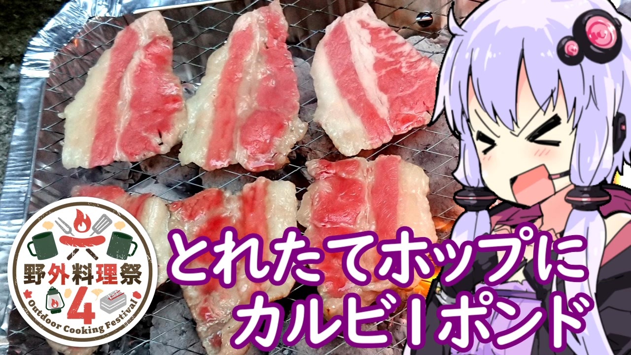 呑んで食って撮って編集して投稿しての、撮りたて動画RTA、はーじまるよー。<br>るみぃさん主催『野外料理祭4(告知→ <a href="https://www.nicovideo.jp/watch/sm45351052" class="watch">sm45351052</a>)に便乗参加。<br>いい肉の日だから、晩秋の黄昏時の庭先で、<br>近所の窓が閉まってて洗濯物も出てなくてラッキー! <br>炭火でカルビ1ポンドを焼いて、旬の生ホップのビールを呑む贅沢。<br>野外感の薄い庭先料理ばかりですまんね。