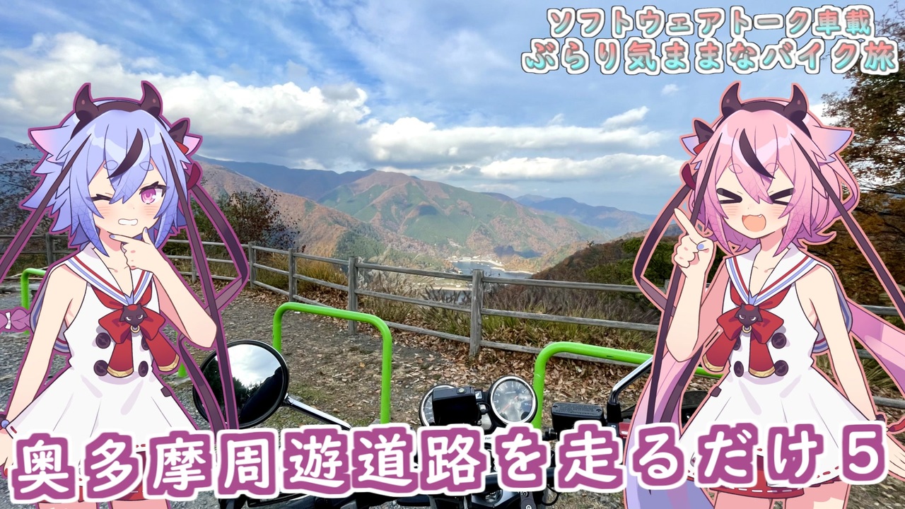 ・使用ソフト<br>AviUtl (<a href="https://seiga.nicovideo.jp/seiga/im1696493" target="_blank" rel="noopener">im1696493</a>)<br>PSDToolKit<br>A.I.VOICE 鳴花ヒメ<br>A.I.VOICE 鳴花ミコト<br><br>・乗り物<br>CB250R<br><br>・撮影機器<br>GoPro HERO11 Black CHDHX-111-FW<br><br>・立ち絵<br>「鳴花ヒメ非公式立ち絵素材」△○□×(みわしいば)様 (<a href="https://seiga.nicovideo.jp/seiga/im11545076" target="_blank" rel="noopener">im11545076</a>)<br>「鳴花ミコト非公式立ち絵素材」△○□×(みわしいば)様 (<a href="https://seiga.nicovideo.jp/seiga/im11545077" target="_blank" rel="noopener">im11545077</a>)<br><br>・BGM<br>「the opening of a book」ioni 様 (<a href="https://commons.nicovideo.jp/works/nc109159" target="_blank" rel="noopener">nc109159</a>)<br>「おきらくシュガー」まんぼう二等兵 様 (<a href="https://commons.nicovideo.jp/works/nc258278" target="_blank" rel="noopener">nc258278</a>)<br>「カナリアスキップ」まんぼう二等兵 様 (<a href="https://commons.nicovideo.jp/works/nc163920" target="_blank" rel="noopener">nc163920</a>)<br><br>OP&シーンチェンジ<br><br>・乗り物<br>CB1300SF<br><br>・立ち絵<br>「琴葉姉妹の立ち絵素材」ユメのオワリ 様<br>「鳴花ヒメ非公式立ち絵素材」△○□×(みわしいば)様<br>「鳴花ミコト非公式立ち絵素材」△○□×(みわしいば)様<br>「東北きりたん座り絵素材」ユメのオワリ 様<br>「【サウナ動画投稿祭】音街ウナちゃん立ち絵素材」ユメのオワリ 様<br>「【素材】ゆかマキ制服立ち絵」からい 様<br>「紲星あかり立ち絵」からい 様<br>「ついなちゃん立ち絵素材私服セット」こーすけさんたまりあ 様<br>「東北ずん子 立ち絵素材」桧野 拓海 様<br>「さとうささら立ち絵」kulori 様<br>「すずきつづみ立ち絵」kulori 様<br>「IAさん立ち絵素材」MtU 様<br>「OИEさん立ち絵素材」MtU 様<br>「双葉湊音の立ち絵素材」ユメのオワリ 様<br>「紡乃世詩音立ち絵素材集_2025」ユメのオワリ 様<br>「花隈千冬立ち絵素材」ユメのオワリ 様<br>「【素材】宮舞モカ立ち絵」からい 様<br>「ほんわかフィーちゃん立ち絵素材」いかるが 様<br>「口のないSD鳴花ヒメ・ミコト立ち絵素材」空どうふ 様<br><br>・BGM<br>「晴色カレイドスコープ」まんぼう二等兵 様<br>「さんさん日和」まんぼう二等兵 様