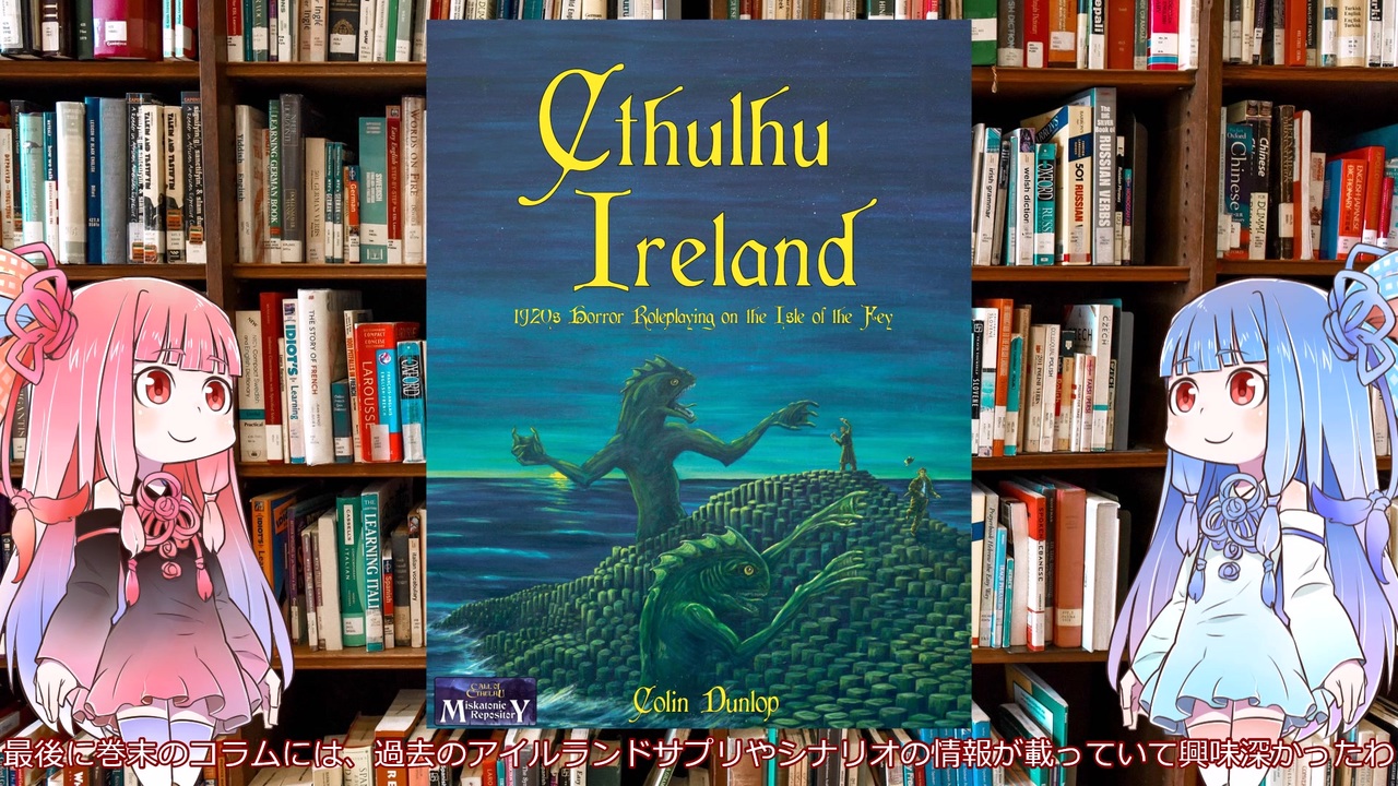 2024年にアメリカのミスカトニックリポジトリから発売された未訳の新クトゥルフ神話TRPGのサプリメント【クトゥルフ・アイルランド(Cthulhu Ireland)】を解説します。<br>1920年代のアイルランドをまとめたサプリになります。<br>元々モノグラフシリーズとしてケイオシアム社が過去にクトゥルフ神話TRPGで販売していたサプリを新クトゥルフ神話TRPGでリメイクしたものです。<br>アイルランドの歴史や文化やダブリンやベルファストなどの4つの都市情報、新しい職業、妖精やケルト神話などのデータが載っています。<br>シナリオは5本収録されています。<br><br>【いいね】ボタンを押すと、アイルランドにまつわる面白いシナリオフックを閲覧できます<br><br>【クトゥルフ・アイルランド 販売サイトDrivethrurpg】<br><a href="https://www.drivethrurpg.com/en/product/501177/cthulhu-ireland?src=also_purchased" target="_blank" rel="noopener nofollow">https://www.drivethrurpg.com/en/product/501177/cthulhu-ireland?src=also_purchased</a><br><br>【ミスカトニックリポジトリ紹介動画】<br><a href="https://nico.ms/sm40683241" target="_blank" rel="noopener nofollow">https://nico.ms/sm40683241</a><br><br>【クトゥルフ・バイ・ガスライトキーパーガイド 解説動画】<br><a href="https://www.nicovideo.jp/watch/sm44898047" target="_blank" rel="noopener nofollow">https://www.nicovideo.jp/watch/sm44898047</a><br><br>【クトゥルフ・バイ・ガスライト探索者ガイド解説動画】<br><a href="https://www.nicovideo.jp/watch/sm44499864" target="_blank" rel="noopener nofollow">https://www.nicovideo.jp/watch/sm44499864</a><br><br>【摂政時代クトゥルフ(Regency Cthulhu) 解説動画】<br><a href="https://www.nicovideo.jp/watch/sm42016332" target="_blank" rel="noopener nofollow">https://www.nicovideo.jp/watch/sm42016332</a><br><br>【アーカムの全て サプリ解説動画】<br><a href="https://www.nicovideo.jp/watch/sm43510240" target="_blank" rel="noopener nofollow">https://www.nicovideo.jp/watch/sm43510240</a><br><br><br>マイリスト <a href="https://www.nicovideo.jp/mylist/68942133" target="_blank" rel="noopener">mylist/68942133</a><br>デルタグリーン(マイリスト) <a href="https://www.nicovideo.jp/mylist/55536957" target="_blank" rel="noopener">mylist/55536957</a><br>ロンドン警視庁特殊犯罪課 <a href="https://www.nicovideo.jp/mylist/76853375" target="_blank" rel="noopener">mylist/76853375</a><br>D&Dサンディ・ピーターセンの暗黒神話体系<a href="https://www.nicovideo.jp/mylist/78963598" target="_blank" rel="noopener">mylist/78963598</a><br>七伏市(マイリスト)<a href="https://www.nicovideo.jp/mylist/77850460" target="_blank" rel="noopener">mylist/77850460</a><br>古代ローマ(マイリスト) <a href="https://www.nicovideo.jp/mylist/56513561" target="_blank" rel="noopener">mylist/56513561</a><br>深淵の系譜(マイリスト) <a href="https://www.nicovideo.jp/mylist/60767217" target="_blank" rel="noopener">mylist/60767217</a><br>イゴの富士 <a href="https://www.nicovideo.jp/mylist/69357718" target="_blank" rel="noopener">mylist/69357718</a>