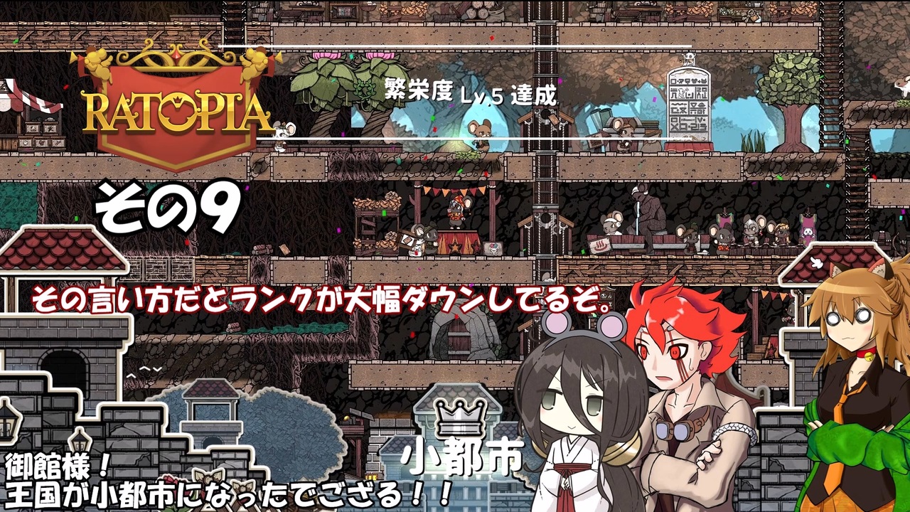 この動画はスチーム版Ratopiaの実況動画です。<br><br>※幾つか難易度を優しくするMODが導入されております。<br>また、高確率で失踪予定!<br>(なにせ何度かプレイして全部襲撃全滅ENDしておりますゆえ)<br><br><br><a href="https://www.nicovideo.jp/watch/sm45641775" class="watch">sm45641775</a> ← 前 次 → そのうち<br>その1リスト →<a href="https://www.nicovideo.jp/mylist/58364125" target="_blank" rel="noopener">mylist/58364125</a> <br><br>VOICEVOX:春日部つむぎ(ネコ耳) 九州そら(山城) 雨晴はう(妖夢)<br> 青山龍星(ドラムカン) 東北きりたん(東北きりたん)<br> あいちゃん(中国うさぎ(立ち絵:akihiyo様作 立ち中国うさぎ素材 <a href="https://seiga.nicovideo.jp/seiga/im11211212" target="_blank" rel="noopener">im11211212</a>))<br>Voiceroid:東北きりたん(立ち絵:このりEX様作 東北きりたん立ち絵素材5 <a href="https://seiga.nicovideo.jp/seiga/im10819054" target="_blank" rel="noopener">im10819054</a>)<br>