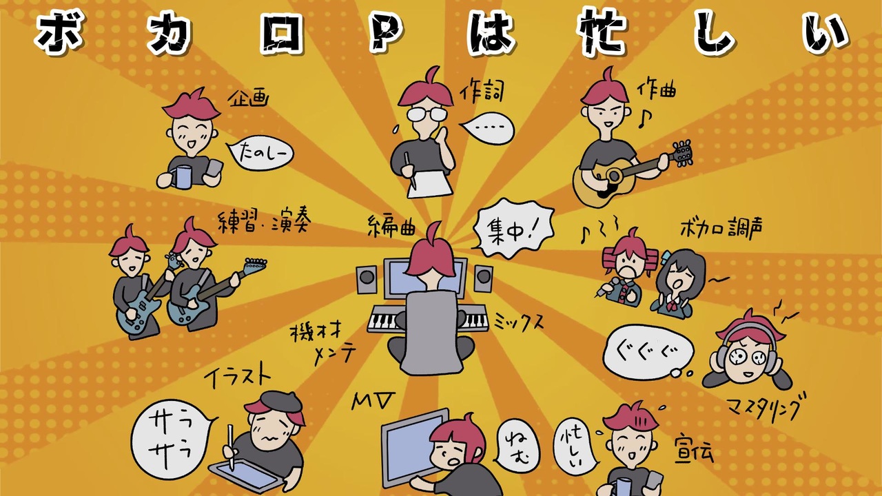 こんにちはミキヲトです。オリジナル42作目です<br><br><span style="color: #cc4125; font-size: 16px;"><strong>12/1 日刊トップテン様で4位にランクインしました!<br>ご視聴ありがとうございます!</strong></span><br><br>#自己紹介曲投稿祭2 エントリー作品<br><br>自己紹介が「ボカロPです」ってのも直球すぎるな~と思いつつ (*´з`)<br><br>ボカロPって忙しいですよね~いろんなことやらないといけなくてww<br>でも好きで好きで仕方ないから、いまココにいます (=゚ω゚)ノ<br><br>●音楽と絵と動画|ミキヲト<br>●歌唱|京町セイカ<br>●コーラス|宮舞モカ・GUMI・重音テト・Jin<br><br>●スペシャルありがとう|夜静海さん <a href="https://x.com/nightshii1615" target="_blank" rel="noopener nofollow">https://x.com/nightshii1615</a><br><br>▼オフボーカル| XのDMからご連絡を<br><br>▼制作録(note)|準備中<br><br>●X(Twitter)<br><a href="https://twitter.com/mikiwoto" target="_blank" rel="noopener nofollow">https://twitter.com/mikiwoto</a><br><br>●YouTube<br><a href="https://www.youtube.com/@mikiwoto" target="_blank" rel="noopener nofollow">https://www.youtube.com/@mikiwoto</a><br><br>●ニコニコ動画<br><a href="https://www.nicovideo.jp/mylist/76374320" target="_blank" rel="noopener nofollow">https://www.nicovideo.jp/mylist/76374320</a><br><br><strong>★動画の内容についての補足<br>自分のようにイラストや動画制作まで全部やってるボカロPもいますが<br>それらを外注しているボカロPさんも数多くいらっしゃいます<br>(どうぞ誤解がありませんように)</strong><br><br><歌詞><br><br>いまさらの話だけど ボカロPは忙しい<br>作詞・作曲・編曲・調声・イラスト・動画まで<br><br>バージョンアップが来た (DAW)<br>マニュアル読まなきゃ (バグだらけ?)<br>流行りのプラグイン (みんな持ってる)<br><br>お金がいくらあっても足りないし<br>ボカロPは大変だ<br><br>それなのにやめられない やめたくないボカロP<br>苦労して作った作品、一生僕の宝<br>君にも届くといいな<br><br>(GOOFY THE FUNK!)<br><br><br><a target="_blank" href="https://qa.nicovideo.jp/faq/show/19424?site_domain=default" style="font-size: 13px;color: #657586; text-decoration: underline; line-height: 1.4">この動画は投稿者によって修正されました</a>