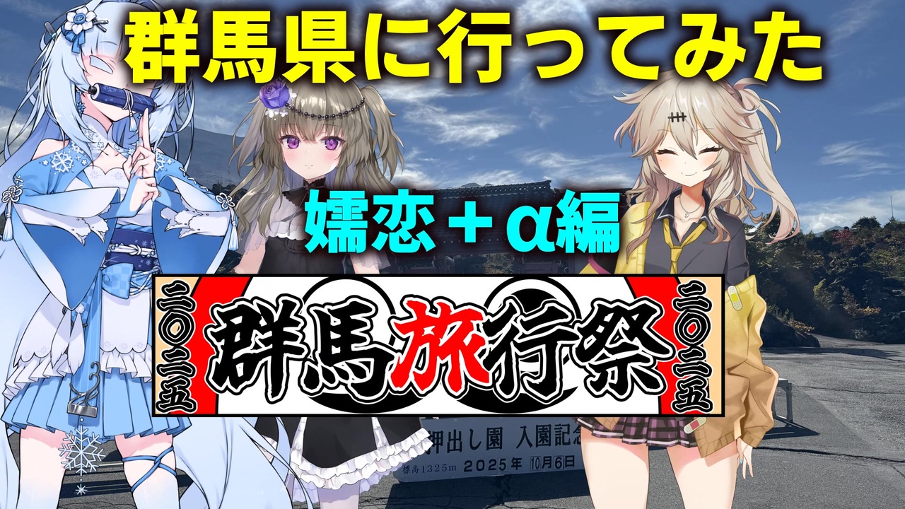 今回も風土様主催の群馬旅行祭2025_旅してぐんま部門に参加させていただきました<br>今回は嬬恋周辺に行ってきた動画です<br>この動画は二部編成の後編となっています。先に前編を見ていただけるとより楽しめます<br>前編 <a href="https://www.nicovideo.jp/watch/sm45646622" class="watch">sm45646622</a><br><br>使用ツール<br>ゆっくりムービーメーカー4<br><br>音声<br>VOICEVOX:春日部つむぎ<br> WhiteCUL<br> 冥鳴ひまり<br><br>立ち絵<br>春日部つむぎ立ち絵素材 とらっかぁ様<br>冥鳴ひまり立ち絵素材 とらっかぁ様<br>ver.1.0 立ち絵素材なWhiteCULさん 聡間まこと様<br>春日部つむぎ立ち絵素材 春日部つむぎ公式様<br>冥鳴ひまり【立ち絵素材】 冥鳴ひまり公式様<br><br>BGM<br>2:23_AM DOVAーSYNDROME しゃろう様<br>10℃ DOVAーSYNDROME しゃろう様<br>野良猫は宇宙を目指した DOVAーSYNDROME しゃろう様<br>アンゴラたちの踊り DOVAーSYNDROME まんぼう二等兵様<br>温泉街 DOVAーSYNDROME Sparrow Tune様<br><br>効果音<br>放送開始チャイム 効果音ラボ様<br>シーン切り替え1 効果音ラボ様<br>チーン1 効果音ラボ様<br>ガラスが割れる2 効果音ラボ様<br>カメラのシャッター3 効果音ラボ様<br><br>他<br>群馬旅行祭2025ロゴ 風土様<br>【シーンチェンジ】ライン_1-1【パステル複数色】 ニコニ・コモンズ EMIT様<br><br>出典<br>西部プリンスホテルズ&リゾーツ <a href="https://www.princehotels.co.jp/amuse/onioshidashi/" target="_blank" rel="noopener nofollow">https://www.princehotels.co.jp/amuse/onioshidashi/</a><br>軽井沢観光協会 <a href="https://karuizawa-kankokyokai.jp/spot/" target="_blank" rel="noopener nofollow">https://karuizawa-kankokyokai.jp/spot/</a><br><br><br>