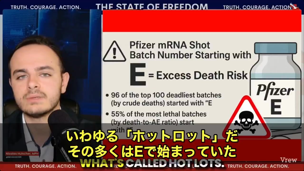 元の動画 → <a href="https://x.com/i/status/1990187786109100370" target="_blank" rel="noopener nofollow">https://x.com/i/status/1990187786109100370</a><br>⚠️ファイザーのmRNAワクチンに関する“極秘ラベル”が暴露されました😨<br><br>「バッチ番号がEで始まるものは、極端な死亡リスクを意味する」<br>そんな警告が出ています💥<br><br>📊実際に、最も死亡率が高かったバッチ上位100件のうち、96件が“E”で始まっていたと報告されていて、<br>これは単なる偶然とは思えないと複数の分析者が指摘しています。<br><br>一部では、こうしたバッチは**“ホットロット(危険なロット)”**と呼ばれていて、接種後に深刻な副作用や予期せぬ体調不良が相次いだと報告されているんです📉<br><br>🔍さらにFDAの「遺伝子治療ガイダンス」では、<br>mRNA遺伝子導入ワクチンの長期的影響が判明するには最大15年かかるとも記されています。<br><br>今はまだ接種から約5年目。<br>本当の結果が見えてくるのは…あと10年先かもしれません⏳<br><br>“何も起きていないように見える”人でも、<br>「遅れて症状が出るタイプ」のリスクがあると研究者たちは警告しています⚡<br><br>ワクチンの中身だけでなく、「いつ」「どのバッチを打ったか」が、今後ますます問われる時代に入ってきました📁💉 11月17日<br><br><br><br><br><a href="https://x.com/w2skwn3" target="_blank" rel="noopener nofollow">https://x.com/w2skwn3</a><br>トッポ<br><br>@w2skwn3<br>趣味は国際政治ですが大学では医学を学びました。テレビの嘘報道にはうんざりしてツイッターで情報交換したいです。<br>