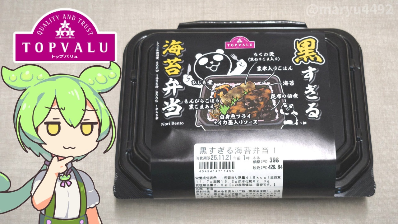 ブラックフライデーに何故か黒い食べ物を販売するお店が多いのですが<br>イオンに行ったら久々に中身が見えないお弁当がありました。<br>しかも容器が真っ黒でブラックフダイデー仕様。<br>中身はどうなっているのでしょうか?<br><br><br><br>【関連動画】<br>イオン 超!ブラックフライデー イケメンパンダメッセージ WEB限定動画(イオンリテール)<br><a href="https://www.youtube.com/watch?v=ZDz4o6ptAuo&t=8s" target="_blank" rel="noopener nofollow">https://www.youtube.com/watch?v=ZDz4o6ptAuo&t=8s</a><br><br>【参考】<br>イオン ブラックフライデーセール<br><a href="https://chirashi.otoku.aeonsquare.net/pc/chirashi/blackfriday/" target="_blank" rel="noopener nofollow">https://chirashi.otoku.aeonsquare.net/pc/chirashi/blackfriday/</a><br>イオン公式X 2025.11.03<br><a href="https://x.com/AEON_JAPAN/status/1985331134343864784" target="_blank" rel="noopener nofollow">https://x.com/AEON_JAPAN/status/1985331134343864784</a><br><br>【使用した素材】(※敬称略) <br>(合成音声)VOICEVOX/ずんだもん/四国めたん<br><a href="https://voicevox.hiroshiba.jp/" target="_blank" rel="noopener nofollow">https://voicevox.hiroshiba.jp/</a> <br>(立ち絵)坂本アヒル<br> <a href="https://seiga.nicovideo.jp/seiga/im10788496" target="_blank" rel="noopener nofollow">https://seiga.nicovideo.jp/seiga/im10788496</a><br>(楽曲)甘茶の音楽工房/「楽しい麦畑」「フルーツパフェ」「お城の舞踏会」<br><a href="https://amachamusic.chagasi.com/" target="_blank" rel="noopener nofollow">https://amachamusic.chagasi.com/</a>