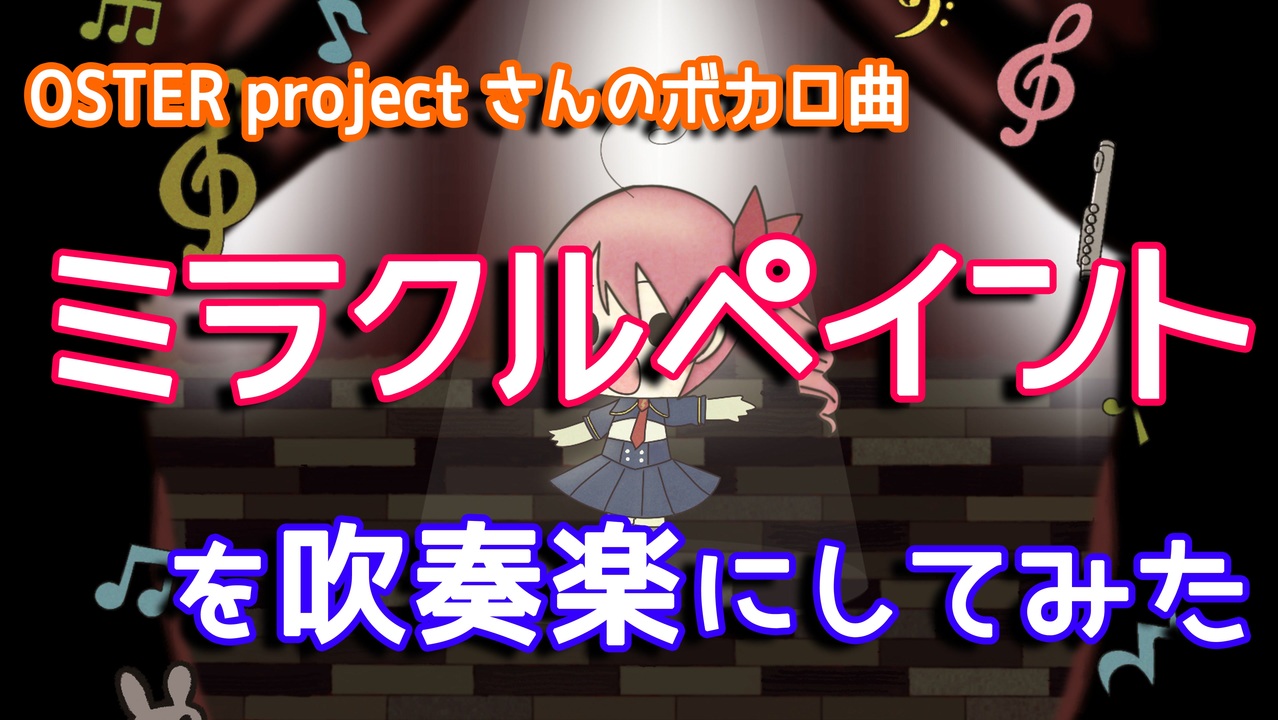 <span style="font-size: 24px;">18周年おめでとうございます!</span><br><br><br>★この楽曲の譜面はBOOTH等で頒布しています<br><a href="https://yoshiuh.booth.pm/items/7811729" target="_blank" rel="noopener nofollow">https://yoshiuh.booth.pm/items/7811729</a><br><br>ども、よしうーです!<br><br>2025年吹奏楽編曲第6弾は、<br>OSTER projectさんのボカロ曲「ミラクルペイント」を吹奏楽編曲にしてみました!<br><br>初音ミク曲の始祖と言っても過言ではないこの曲、<br>OSTERさんの超おシャンティなハーモニーと<br>10年以上積み重ねたアレンジ経験から生まれた傑作です。<br>2007年初期投稿版と、アルバム版からいいとこどりのアレンジになっています<br>ご堪能ください!<br><br>ちなみにこの曲は<br>2025年10月12日に開催した<br>「ボーカロイド曲を吹奏楽で演奏しようオフ5in関東」( #ぼかぶらオフ関東5 ) と<br>2025年11月24日に開催予定の<br>「ボーカロイド曲を吹奏楽で演奏しようオフ5in関西」( #ぼかぶらオフ関西5 ) <br>で実演します!<br>楽譜も2025年末のコミケ107で頒布が決まっておりますので、楽しみにしてください!<br><br><span style="color: #ff0000; font-size: 16px;">え、トランペットが高いって?</span><br><span style="color: #ff0000; font-size: 24px;">仕様です。</span><br><br><br>作詞作曲:OSTER project (<a href="https://x.com/fuwacina" target="_blank" rel="noopener nofollow">https://x.com/fuwacina</a> )<br>※原曲:<a href="https://www.nicovideo.jp/watch/sm1588476" target="_blank" rel="noopener nofollow">https://www.nicovideo.jp/watch/sm1588476</a><br>吹奏楽編曲:Yoshiuh(<a href="https://x.com/swo_yoshiuh" target="_blank" rel="noopener nofollow">https://x.com/swo_yoshiuh</a> )<br><br>サムネ:ゆりら (<a href="https://x.com/107_1218_124_41" target="_blank" rel="noopener nofollow">https://x.com/107_1218_124_41</a> )<br><br>【使用音源】<br>EWHollywoodOrchestra/EWSymphonicOrchestra/SaxLab2<br>AddictiveDrums/Heins-Horns/Trilian Bass/TambMaster2 他<br><br>#吹奏楽 #OSTERproject #ボカロ<br /><br><strong>◆NicoFT始めました!◆</strong><br>パートナーパスで応援よろしくお願いします!<br><a href="https://nicoft.io/collections/yoshiuh-collection" target="_blank" rel="noopener nofollow">https://nicoft.io/collections/yoshiuh-collection</a><br><br><strong>◆おすすめ動画◆</strong><br>【OSTERproject】「ミラクルペイント」を吹奏楽にしてみた<br><a href="https://www.nicovideo.jp/watch/sm45650436" class="watch">sm45650436</a><br>(投稿動画一覧:<a href="https://www.nicovideo.jp/user/5489948/video" target="_blank" rel="noopener nofollow">https://www.nicovideo.jp/user/5489948/video</a> )<br><br>◆マイリスト◆<br>吹奏楽編曲:<a href="https://www.nicovideo.jp/mylist/26732699" target="_blank" rel="noopener">mylist/26732699</a><br>吹奏楽実演(オフ会・オンライン・他):<a href="https://www.nicovideo.jp/mylist/40220135" target="_blank" rel="noopener">mylist/40220135</a><br>吹奏楽作曲:<a href="https://www.nicovideo.jp/mylist/44259241" target="_blank" rel="noopener">mylist/44259241</a><br>ボカロ:<a href="https://www.nicovideo.jp/mylist/28278100" target="_blank" rel="noopener">mylist/28278100</a><br><br>★★BOOTHで編曲した楽譜も取り扱っています!★★<br>詳細は「<a href="https://yoshiuh.booth.pm/" target="_blank" rel="noopener nofollow">https://yoshiuh.booth.pm/</a> 」へ<br><br>★★編曲雑談Discordを立ち上げました!★★<br>編曲に関するトークや企画もこちらで行う…かも?<br><a href="https://discord.gg/KNAwGbrAuX" target="_blank" rel="noopener nofollow">https://discord.gg/KNAwGbrAuX</a><br><br>★★耳コピサービス始めました★★<br><a href="https://coconala.com/users/2574755" target="_blank" rel="noopener nofollow">https://coconala.com/users/2574755</a>