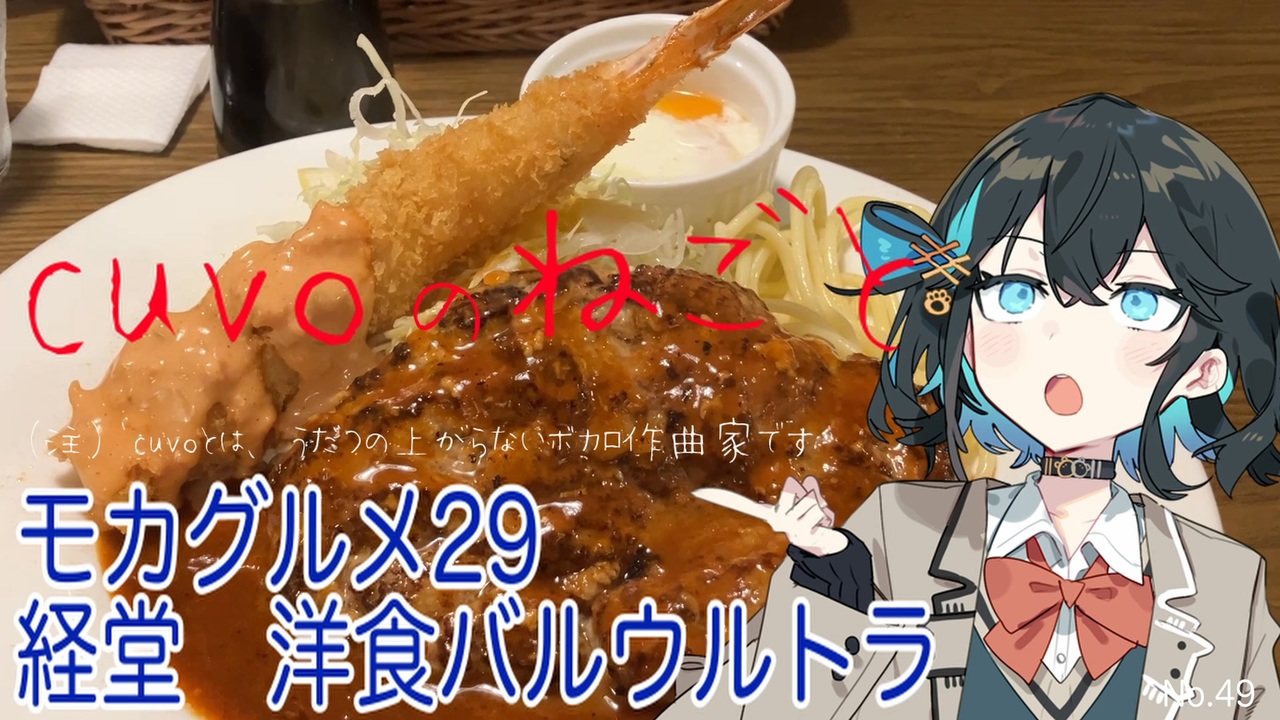 こんにちは!<br>cuvoのねごと、第49回です!<br><br>シリーズ「モカグルメ」の<br>第29弾をお届けします!<br><br>今回は経堂にある<br>洋食バルウルトラのランチに行ってきました♪<br><br>ハンバーグステーキとエビフライ<br>めっちゃ美味しかったです!<br><br>「これが至福ってやつですかぁ!」<br><br>気になった方は、ぜひ行ってみてくださいね!<br><br><br>ーーーーーーー<br>▼Xで発信中!cuvoのねごと<br><a href="https://twitter.com/cuvo_jpn" target="_blank" rel="noopener nofollow">https://twitter.com/cuvo_jpn</a><br><br><br>▼エンディングテーマ<br>「飲みに行こう」<br>曲:cuvo / 詞:vie<br>歌:seven(neutrino)<br><br>↓ニコ動<br><a href="https://nico.ms/sm41946436" target="_blank" rel="noopener nofollow">https://nico.ms/sm41946436</a><br><br>↓YouTube<br><a href="https://youtu.be/aJWyRuT7cGk" target="_blank" rel="noopener nofollow">https://youtu.be/aJWyRuT7cGk</a><br><br>ーーーーーーーーーーーーーーーーー<br><br />ニコニコ動画(cuvo:ボカロ曲)<br><a href="https://www.nicovideo.jp/user/123099454/video" target="_blank" rel="noopener nofollow">https://www.nicovideo.jp/user/123099454/video</a><br><br>YouTube<br><a href="https://www.youtube.com/channel/UCeyFWGAsM1u0r7XpT0yeDPA/" target="_blank" rel="noopener nofollow">https://www.youtube.com/channel/UCeyFWGAsM1u0r7XpT0yeDPA/</a><br><br>X(旧Twitter)<br><a href="https://twitter.com/cuvo_jpn" target="_blank" rel="noopener nofollow">https://twitter.com/cuvo_jpn</a><br><br>Instagram<br><a href="https://www.instagram.com/cuvo_jpn/" target="_blank" rel="noopener nofollow">https://www.instagram.com/cuvo_jpn/</a>
