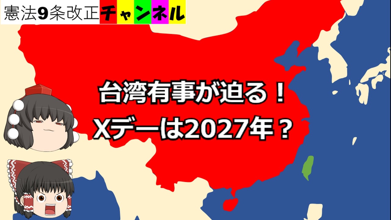 「台湾有事」は「日本有事」です。<br><br><a href="#" class="seekTime" data-seekTime="0:00" onclick="seekNicoPlayer('#0:00'); return false;">#0:00</a>オープニング<br><a href="#" class="seekTime" data-seekTime="0:50" onclick="seekNicoPlayer('#0:50'); return false;">#0:50</a>台湾有事はいつ起こる?<br><a href="#" class="seekTime" data-seekTime="2:56" onclick="seekNicoPlayer('#2:56'); return false;">#2:56</a>もし台湾有事が起きたら<br><a href="#" class="seekTime" data-seekTime="5:38" onclick="seekNicoPlayer('#5:38'); return false;">#5:38</a>集団的自衛権は行使できるのか?<br><a href="#" class="seekTime" data-seekTime="7:35" onclick="seekNicoPlayer('#7:35'); return false;">#7:35</a>エンディング<br><br>署名はこちら。<br><a href="https://kenpou9joukaisei.1web.jp/" target="_blank" rel="noopener nofollow">https://kenpou9joukaisei.1web.jp/</a><br>BGM Mus-Mus「電脳漂流記」、「OtoLogic」<br><br>