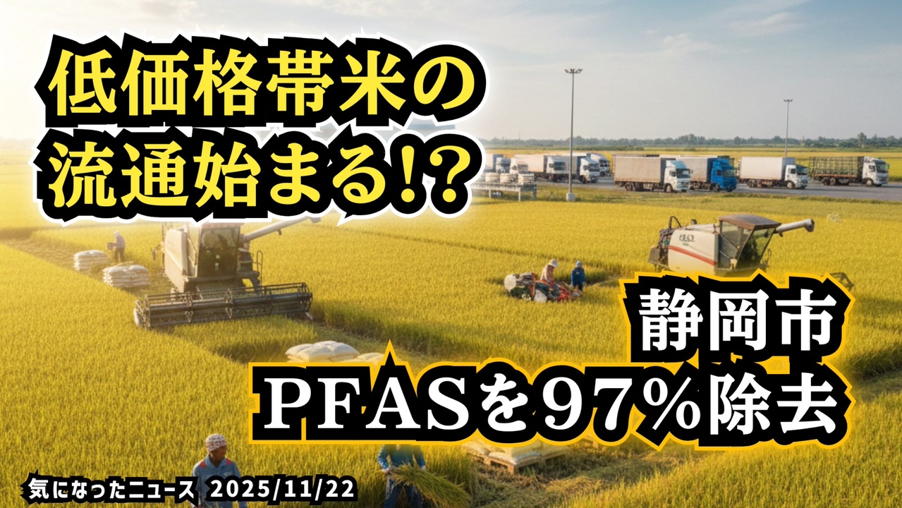 ◆低価格米支援:農水省が補正予算で「安い国産米」流通を後押しへ◆PFASを97%除去 ~ 静岡市が世界初の新技術を発表<br><br>あらすじ<br>農林水産省が、今年度の補正予算案で「比較的安価な国産米(低価格帯コメ)」の流通支援を打ち出しました。多収性品種や直播栽培などで生産コストを下げ、スーパーなどにも安い国産米を安定供給するモデルを構築するという狙いです。これは、米価高止まりへの対応として重要な政策転換。鈴木大臣も、多様な価格帯に応える生産体制の構築を強調しています。一方で、政党間でもコメ政策は熱い論争の的に。<br><br>有機フッ素化合物(PFAS)について、静岡市は、昨年から進めている実証実験で、世界初の技術を用いて汚染水から97%を除去することに成功!<br><br>◆今回の台本&詳細<a href="https://keiichiro8140.hatenablog.com/entry/2511222222" target="_blank" rel="noopener nofollow">https://keiichiro8140.hatenablog.com/entry/2511222222</a><br><br>◆これまでの動画<a href="https://x.gd/sPXoJ" target="_blank" rel="noopener nofollow">https://x.gd/sPXoJ</a><br><br>◆もしも(BAN)の時のためのマイリンク集<a href="https://lit.link/K-16-news-44" target="_blank" rel="noopener nofollow">https://lit.link/K-16-news-44</a><br><br>ご覧いただきありがとうございます<br>m(_ _)m<br>気になったニュース 2025/11/22<br><br />著作権、肖像権に配慮して作成しております。<br><br>◆気になったニュースの台本!?<br>メモ代わりに作った台本をそのままあげてます<br><a href="https://keiichiro8140.hatenablog.com/." target="_blank" rel="noopener nofollow">https://keiichiro8140.hatenablog.com/.</a><br><br><br>ここからはシリーズ紹介<br><br><br>◆ ワクチン解毒・デトックス<br><a href="https://x.gd/fZweg" target="_blank" rel="noopener nofollow">https://x.gd/fZweg</a><br><br>◆ウイリアム・マキス博士のがん治療(イベルメクチン・フェンベンダゾール等)<br><a href="https://x.gd/AtFYS" target="_blank" rel="noopener nofollow">https://x.gd/AtFYS</a><br><br>◆予防接種健康被害救済制度<br><a href="https://x.gd/0xK9x" target="_blank" rel="noopener nofollow">https://x.gd/0xK9x</a><br><br>◆気になったニュース #1501~<br><br>◆ 【ショートver】気になったニュース<br><a href="https://x.gd/7MxXC" target="_blank" rel="noopener nofollow">https://x.gd/7MxXC</a><br><br>◆ 気になったニュース #1001~<br><a href="https://x.gd/Lp8gv" target="_blank" rel="noopener nofollow">https://x.gd/Lp8gv</a><br><br>◆ 気になったニュース #501~<br><a href="https://x.gd/EmbS4" target="_blank" rel="noopener nofollow">https://x.gd/EmbS4</a><br><br>◆ 気になったニュース #1~#500<br><a href="https://x.gd/uPhNb" target="_blank" rel="noopener nofollow">https://x.gd/uPhNb</a><br><br>◆ X(旧Twitter)・テレグラムで気になった情報<br><a href="https://x.gd/YG6FT" target="_blank" rel="noopener nofollow">https://x.gd/YG6FT</a><br><br>◆ 日比谷5万人パレードデ⚪生放送アーカイブ動画<br><a href="https://x.gd/3CHJv" target="_blank" rel="noopener nofollow">https://x.gd/3CHJv</a><br><br>◆日比谷5万人パレード⚪モのマイリスト作ってみました<br><a href="https://nico.ms/mylist/76828848?ref=sp_other" target="_blank" rel="noopener nofollow">https://nico.ms/mylist/76828848?ref=sp_other</a><br><br>◆3.30 令和の百姓⚪⚪<br><a href="https://www.nicovideo.jp/series/511791?ref=garage_share_other" target="_blank" rel="noopener nofollow">https://www.nicovideo.jp/series/511791?ref=garage_share_other</a><br><br>◆ 及川幸久さんの【XNEWS】シリーズ<br><a href="https://x.gd/3k78K" target="_blank" rel="noopener nofollow">https://x.gd/3k78K</a><br><br>◆これまでの動画<a href="https://x.gd/sPXoJ" target="_blank" rel="noopener nofollow">https://x.gd/sPXoJ</a><br><br>◆もしも(BAN)の時のためのマイリンク集<a href="https://lit.link/K-16_News44" target="_blank" rel="noopener nofollow">https://lit.link/K-16_News44</a><br><br>