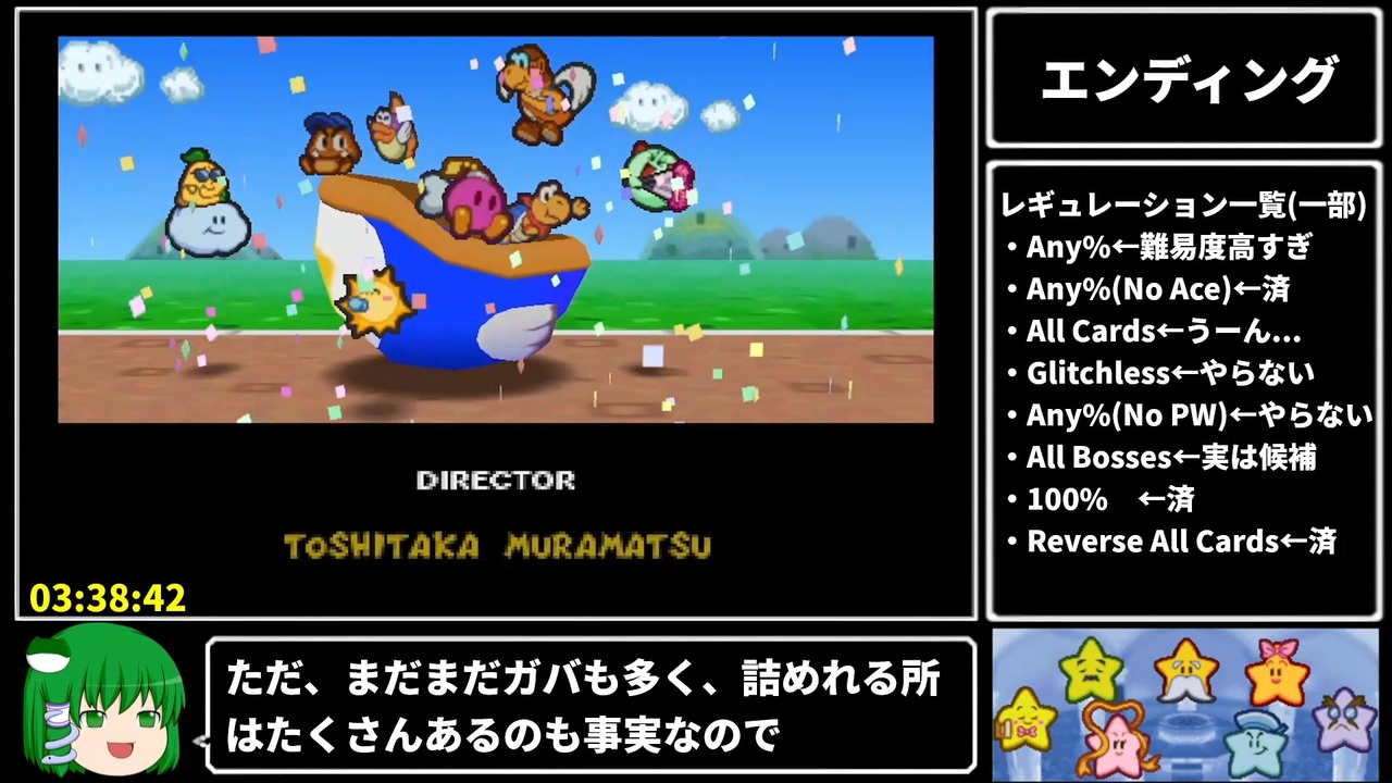 人生で初めて入院したので初投稿です。<br><br><strong>「ゲームやりこみ学会 新作動画発表会2025秋」の参加動画です。<br>上位目指しているのでイイネやコメント、マイリスよろしくお願いします!</strong><br><span style="color: #ffff00;">なお上位ATには入れれない模様(全スマスロ共通)</span><br><br>8面開始~エンディングまで<br><br>part8→<a href="https://www.nicovideo.jp/watch/sm45519328" class="watch">sm45519328</a><br>part1→<a href="https://www.nicovideo.jp/watch/sm45273701" class="watch">sm45273701</a><br><br>・環境<br>実機(Nintendo Switch)、GC550 PLUS、RECentral4<br><br>マリオストーリー100%RTA→<a href="https://www.nicovideo.jp/mylist/75943358" target="_blank" rel="noopener">mylist/75943358</a><br>youtube版→<a href="https://youtu.be/FOUo8BSyIPc" target="_blank" rel="noopener nofollow">https://youtu.be/FOUo8BSyIPc</a><br>※淫夢素材が苦手な方はyoutube版をご視聴ください。<br><br>対戦のお誘い<br>Discord→anihun_2963<br>X→<a href="https://x.com/ANIHUN_popn" target="_blank" rel="noopener nofollow">https://x.com/ANIHUN_popn</a><br>Discord対戦サーバー→<a href="https://discord.gg/wyauwPjXFf" target="_blank" rel="noopener nofollow">https://discord.gg/wyauwPjXFf</a><br><br>© 2000 Nintendo.<br>Game by INTELLIGENT SYSTEMS.<br><br>当該作品の転載・配布は禁止いたします。<br>但し,動画紹介等の理由で動画の一部を引用することは認めます。