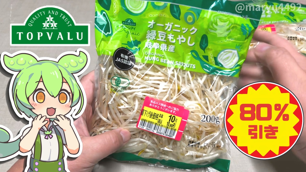 トップバリュのオーガニックもやしが10円で買えたので<br>もやし鍋を作ることにしました。<br><br><br>【参考】<br>オーガニック緑豆もやし ※本体価格48円/200g(トップバリュ)<br><a href="https://www.topvalu.net/items/detail/4549741004831/" target="_blank" rel="noopener nofollow">https://www.topvalu.net/items/detail/4549741004831/</a><br>ごま油香るもやし鍋つゆ ※本体価格198円/750g(トップバリュ)<br><a href="https://www.topvalu.net/items/detail/4549414688481/" target="_blank" rel="noopener nofollow">https://www.topvalu.net/items/detail/4549414688481/</a><br>うまみ和豚(トップバリュ)<br><a href="https://www.topvalu.net/tvumamiwabuta/" target="_blank" rel="noopener nofollow">https://www.topvalu.net/tvumamiwabuta/</a><br><br>【使用した素材】(※敬称略) <br>(合成音声)VOICEVOX/ずんだもん/四国めたん<br><a href="https://voicevox.hiroshiba.jp/" target="_blank" rel="noopener nofollow">https://voicevox.hiroshiba.jp/</a> <br>(立ち絵)坂本アヒル<br> <a href="https://seiga.nicovideo.jp/seiga/im10788496" target="_blank" rel="noopener nofollow">https://seiga.nicovideo.jp/seiga/im10788496</a><br>(楽曲)甘茶の音楽工房/「楽しい麦畑」「フルーツパフェ」「お城の舞踏会」<br><a href="https://amachamusic.chagasi.com/" target="_blank" rel="noopener nofollow">https://amachamusic.chagasi.com/</a>