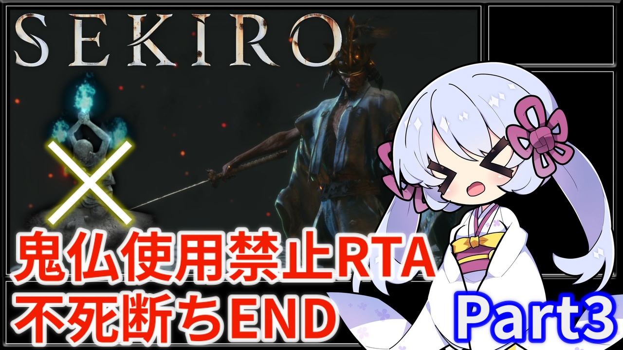 さすがにしんどくなってくるので初投稿です。<br><br>■カテゴリー|Immortal Severance Glitchless<br>・不死断ちエンドをクリアする<br>・バグ技は使用禁止<br>・環境はPC版のver.1.04<br>・その他、詳細はSpeedrun.comのルールに準拠<br><br>■縛りルールとか<br>・鬼仏の使用禁止<br>・帰り仏は使用可能<br>・忍具は使用可能<br><br>Youtube版|<a href="https://youtu.be/5QIELjOMzb0" target="_blank" rel="noopener nofollow">https://youtu.be/5QIELjOMzb0</a><br>Twitter|<a href="https://twitter.com/mizuki_aihr" target="_blank" rel="noopener nofollow">https://twitter.com/mizuki_aihr</a><br><br>■進行中シリーズ<br>つくよみちゃんの少し暇ができたので|<a href="https://www.nicovideo.jp/series/456738" target="_blank" rel="noopener">series/456738</a><br>ダークソウル3初見プレイ|<a href="https://www.nicovideo.jp/series/461984" target="_blank" rel="noopener">series/461984</a><br>ゲーム関係Part1|<a href="https://www.nicovideo.jp/mylist/68457079" target="_blank" rel="noopener">mylist/68457079</a><br><br>解説|つくよみちゃん (フリー読み上げソフト COEIROINK を使用)<br>立ち絵|みるくぱんだ様|<a href="https://seiga.nicovideo.jp/seiga/im11045234" target="_blank" rel="noopener">im11045234</a><br>フリー素材キャラクターつくよみちゃん|<a href="https://tyc.rei-yumesaki.net/" target="_blank" rel="noopener nofollow">https://tyc.rei-yumesaki.net/</a><br>COEIROINK|<a href="https://coeiroink.com/" target="_blank" rel="noopener nofollow">https://coeiroink.com/</a>
