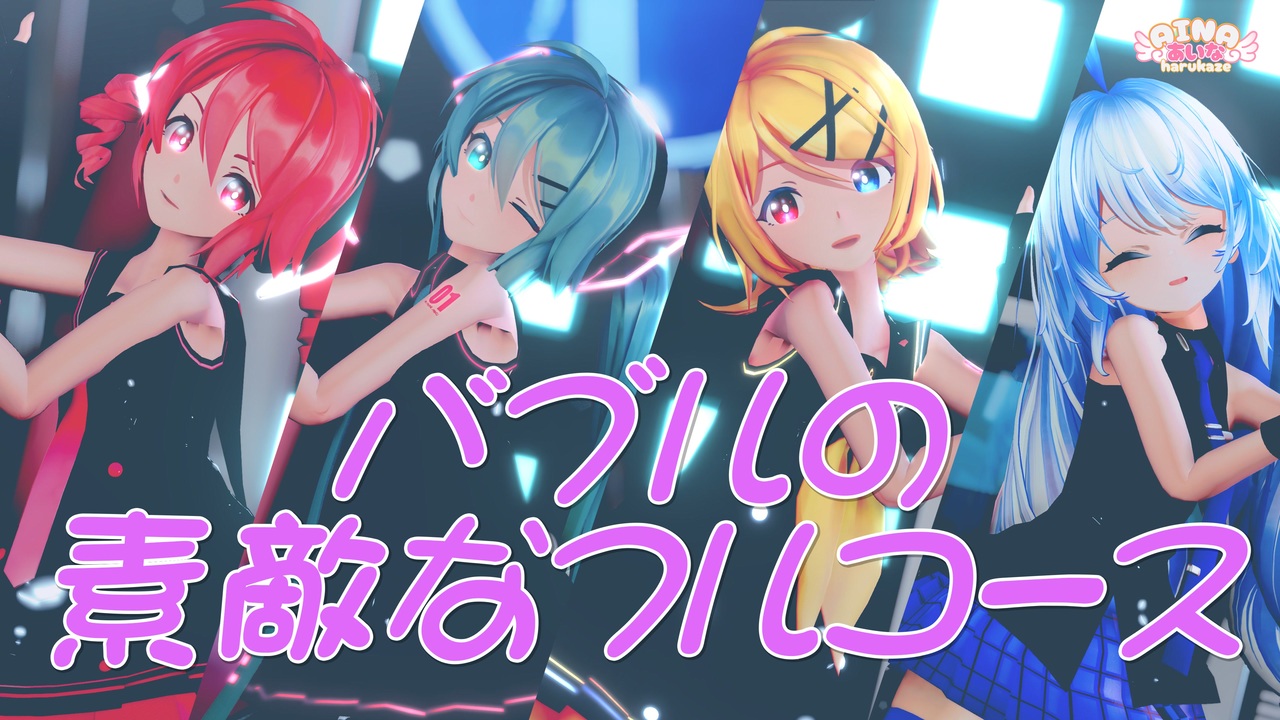 ☆3000再生達成~見て頂いた皆さんほんとにありがとうございます☆<br>とっても可愛い曲とモーション~フリフリバージョンを4人でダンスしました~♪ <br>モーションを各調整と少し改変、カメラも調整しながら改変しています~ <br>まだまだ色々ダメダメな所が多いのですけど、見て頂けたら嬉しいです~( 〃 ❛ᴗ❛ 〃 ) <br><br>youtue 4K動画はこちらへ↓<br><a href="https://www.youtube.com/@AIna-channel" target="_blank" rel="noopener nofollow">https://www.youtube.com/@AIna-channel</a><br><br>今回お借りしてる情報は↓へ♪ <br>楽曲:バブルの素敵なフルコース / 初音ミク&ずんだもん/夏山よつぎ 様/ <a href="https://www.nicovideo.jp/watch/sm45315441" class="watch">sm45315441</a><br>モーション:づなうじ様/ <a href="https://www.nicovideo.jp/watch/sm45624300" class="watch">sm45624300</a><br>振付・トレース元:足太ぺんた様/ <a href="https://www.nicovideo.jp/watch/sm45464352" class="watch">sm45464352</a><br>リップ・目線・表情:ノン様(づなうじ様同梱)/ <a href="https://seiga.nicovideo.jp/seiga/im9231038" target="_blank" rel="noopener">im9231038</a><br>カメラ:そまり様/ <a href="https://www.nicovideo.jp/watch/sm45632049" class="watch">sm45632049</a><br>(春風あいな-改変)<br>☆ツール☆ <br>MMD/MME/Premiere pro VMDサイジング:miu様<br>☆モデル☆ <br>Sour式初音ミク&鏡音リン:Sour暄様 <a href="https://www.nicovideo.jp/user/25576836" target="_blank" rel="noopener nofollow">https://www.nicovideo.jp/user/25576836</a> <br>Sour式重音テト:Sour & MozzarellaStix 様<br>あいなモデル:namekuji1337様:<a href="https://x.com/namekuji1337" target="_blank" rel="noopener nofollow">https://x.com/namekuji1337</a> <br>衣装:kumagoro(kumakichi)様/ <a href="https://seiga.nicovideo.jp/seiga/im5972488" target="_blank" rel="noopener">im5972488</a> <br><br>☆ステージ☆ <br>hazi様: <a href="https://seiga.nicovideo.jp/seiga/im5442685" target="_blank" rel="noopener">im5442685</a><br>☆エフェクト☆<br>Rui様/そぼろ様/less様/おたもん様/針金P様/ましまし様 ikeno様/glam様/化身バレッタ様/ミーフォ茜様<br>Johndoo様/roz様/Sano_様/のりしお様/ビームマンP様/Caeru様/ame2様<br>更科様<br><br>お借りさせて頂いている皆様~いつもありがとうございます!<br>動画を見て頂いている皆様~まだまだ調整の甘いお勉強中のあいなですけど、いつもほんとうにありがとうございます!<br><br>追記☆<br>広告ありがとうございます!文字数制限で記載は↓へ♪<br><a href="https://x.com/AinaHarukaze" target="_blank" rel="noopener nofollow">https://x.com/AinaHarukaze</a><br>コメント・いいね・マイリス、ありがとうございます!<br>