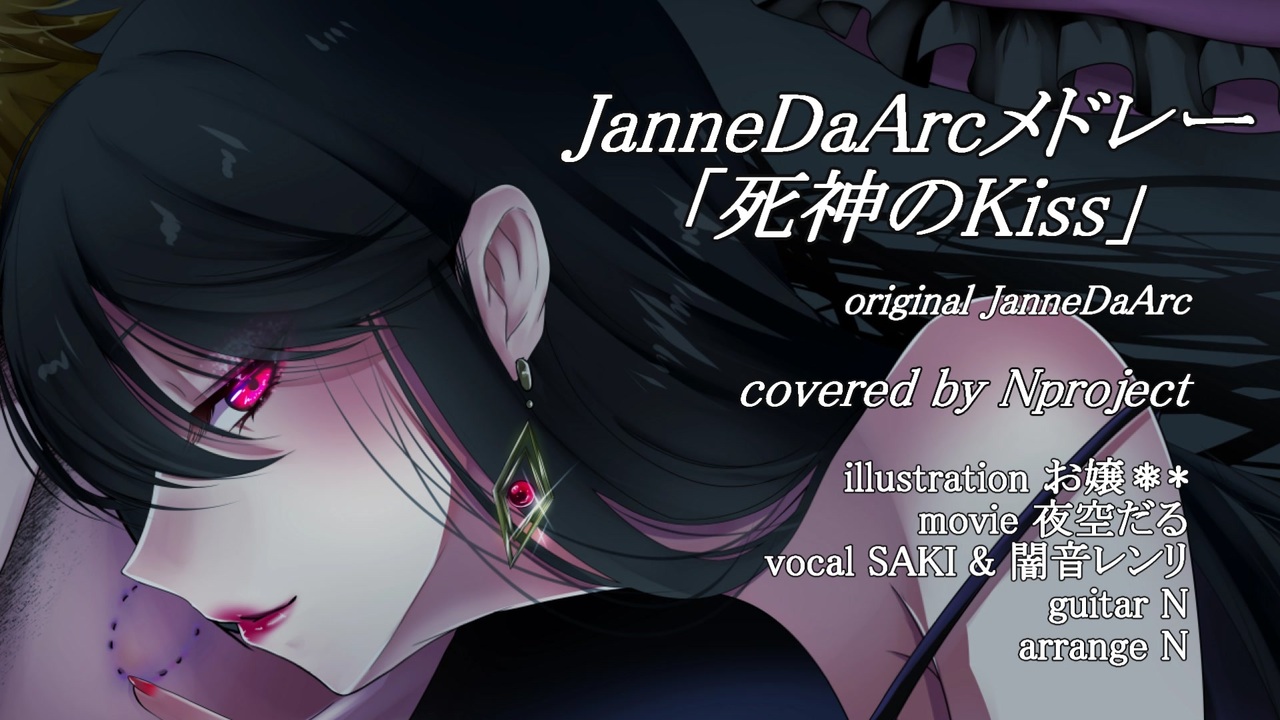 「ボカロV系カバー祭2025冬」参加作品です。<br><br>ご視聴ありがとうございます♪<br>社会人ギタリスト & DTMerの N です。<br><br>自分の音楽のルーツでもあるV系。<br>もちろん今回も参加させていただきます★<br><br>今回は3曲で参加♪<br>2曲目は、JanneDaArcさんのインディーズ曲メドレーを少しアレンジさせていただきました!<br>ライブで演奏されているメドレーに、大好きなインディーズ曲も加えNproject風にアレンジしています★<br>大好きなJanneDaArcさんのインディーズ名曲、とても素敵な声、イラスト、動画とともに皆さんに届きますように~♪<br><br>↓Youtube版はこちら↓<br><a href="https://youtu.be/W4li7rl8h24" target="_blank" rel="noopener nofollow">https://youtu.be/W4li7rl8h24</a><br>(2025/12/6 19:00公開)<br><br>JanneDaArcメドレー「死神のKiss」 / JanneDaArc<br><br>Labyrinth<br>Hunting<br>Strange Voice<br>Stare<br>Speed<br>Ice<br>R-type<br>Judgement~死神のkiss~<br><br>【-N project- feat.SAKI & 闇音レンリ】<br>arranged & covered by Nproject<br><br>vocal SAKI & 闇音レンリ<br>illustration お嬢❅*<br> <a href="https://www.pixiv.net/users/60266428" target="_blank" rel="noopener nofollow">https://www.pixiv.net/users/60266428</a><br>movie 夜空だる<br> X : <a href="https://twitter.com/nightd_mov" target="_blank" rel="noopener nofollow">https://twitter.com/nightd_mov</a><br>guitar N<br> X : <a href="https://twitter.com/norisk29" target="_blank" rel="noopener nofollow">https://twitter.com/norisk29</a><br><br>◆ボカロV系カバー祭2025冬 :12/6-12/7(主催:YOU ゚ω ゚様) <br><a href="https://twipla.jp/events/687684" target="_blank" rel="noopener nofollow">https://twipla.jp/events/687684</a><br><br>◆OFFVocal↓<br><a href="https://drive.google.com/drive/folders/1FwUSss9yQXcIU6d360x9fvDCk0C20Wdx?usp=sharing" target="_blank" rel="noopener nofollow">https://drive.google.com/drive/folders/1FwUSss9yQXcIU6d360x9fvDCk0C20Wdx?usp=sharing</a><br><br>↓これまでのカバー曲たち<br><a href="https://www.nicovideo.jp/user/124107928/series/365939" target="_blank" rel="noopener nofollow">https://www.nicovideo.jp/user/124107928/series/365939</a>