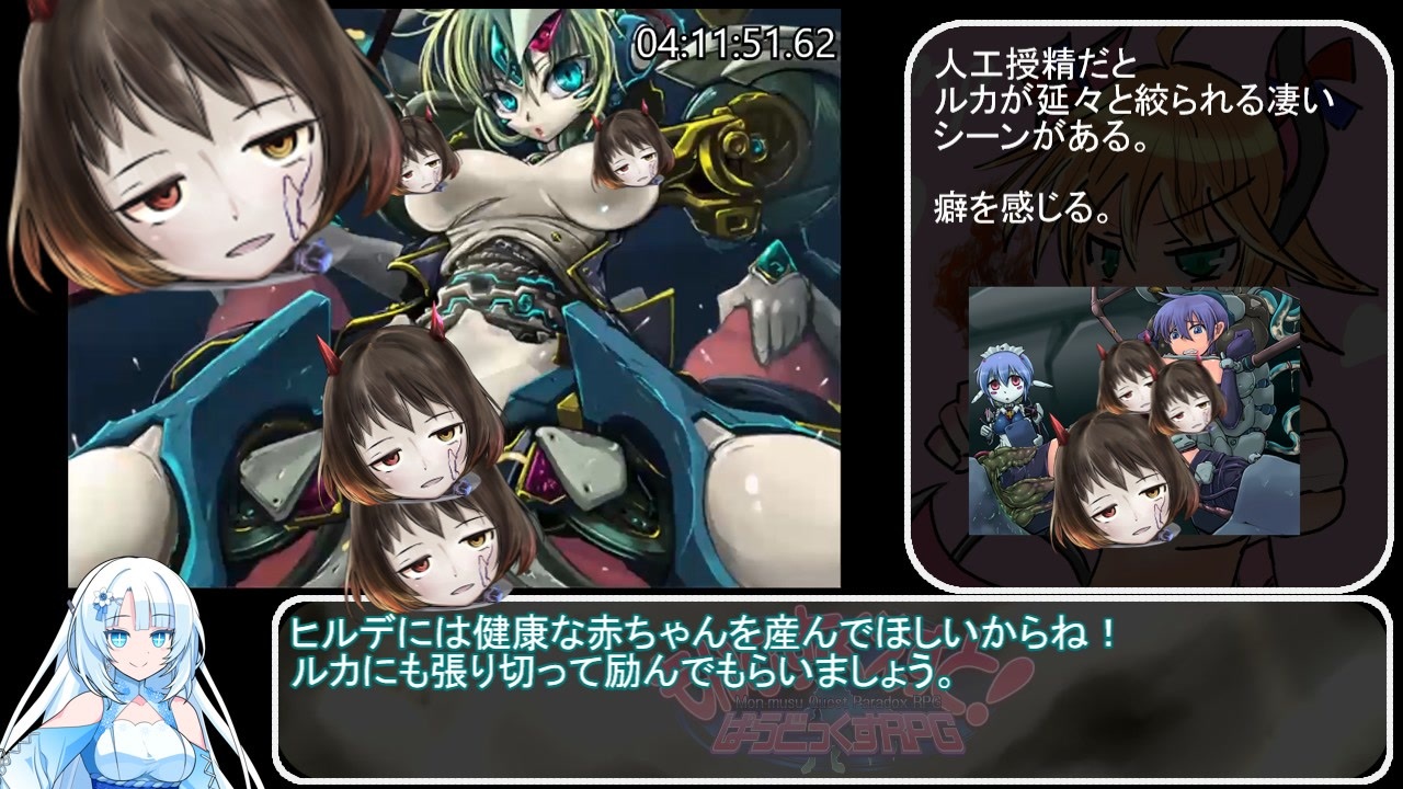 もんむす・くえすと!ぱらどっくすRPG終章 Ver3.04<br>コンバートなし<br><br>レギュ補足<br>難易度変更の禁止<br>ルーラールーラー使用禁止<br>システムデータは空っぽの状態で始める<br><br>前<a href="https://www.nicovideo.jp/watch/sm45620602" class="watch">sm45620602</a><br>次<a href="https://www.nicovideo.jp/watch/sm45736451" class="watch">sm45736451</a><br><br>区間<br>魔界の審判終了 から 迷いの森(混沌) まで<br><br>あまりにもあんまりな修正ミスがあったから上げなおしです<br><br><span style="color: #ff0000; font-size: 18px;">ご視聴の注意<br>もんぱらの深刻なネタバレがあります<br>ゲームプレイ後の視聴を推奨いたします</span><br><br><span style="color: #262626; font-size: 13px;">計測区間 NEWGAME選択から エンディングのタイトルロゴが表示された 瞬間まで<br><br>もんぱら用まいりすと<a href="https://www.nicovideo.jp/mylist/62081897" target="_blank" rel="noopener">mylist/62081897</a></span><br>BLACKSOULSⅡ<a href="https://www.nicovideo.jp/mylist/63878502" target="_blank" rel="noopener">mylist/63878502</a><br><span style="color: #262626; font-size: 13px;">BLACKSOULS </span><a href="https://www.nicovideo.jp/mylist/59887561" target="_blank" rel="noopener">mylist/59887561</a><br>その他<a href="https://www.nicovideo.jp/mylist/63112367" target="_blank" rel="noopener">mylist/63112367</a><br><br><br>実はもんぱらのdiscordサーバー作ってます。<br>なんか語りたい人がいたらどうぞ。<br><a href="https://discord.gg/MspJUkHYBn" target="_blank" rel="noopener nofollow">https://discord.gg/MspJUkHYBn</a><br><br><br>VOICEVOX:whitecul<br>