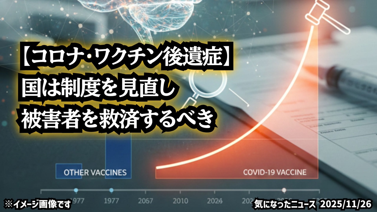 【救済制度の現実】◆被害者の方は、必ず申請してください。【コロナ・ワクチン後遺症】<br><br>あらすじ<br>ワクチン後の体調変化に悩む人が増える一方、救済制度の審査では「認定」「否認」「保留」が複雑に分かれ、申請したとしても結果が読めない現実があります。最新の審議では、死亡や障害の認定が極めて少なく、多くが否認や保留という状況でした。<br>しかし、基礎疾患の評価や症状の関連性など、判断の裏側には一般には見えにくい基準が存在します。救済の門は狭くても、申請しなければ道は開きません。<br><br>◆今回の台本&詳細<a href="https://keiichiro8140.hatenablog.com/entry/25112666222" target="_blank" rel="noopener nofollow">https://keiichiro8140.hatenablog.com/entry/25112666222</a><br><br>◆これまでの動画<a href="https://x.gd/sPXoJ" target="_blank" rel="noopener nofollow">https://x.gd/sPXoJ</a><br><br>◆もしも(BAN)の時のためのマイリンク集<a href="https://lit.link/K-16-news-44" target="_blank" rel="noopener nofollow">https://lit.link/K-16-news-44</a><br><br>ニュース<br>気になったニュース<br><br>ご覧いただきありがとうございます<br>m(_ _)m<br>気になったニュース 2025/11/26<br><br />著作権、肖像権に配慮して作成しております。<br><br>◆気になったニュースの台本!?<br>メモ代わりに作った台本をそのままあげてます<br><a href="https://keiichiro8140.hatenablog.com/." target="_blank" rel="noopener nofollow">https://keiichiro8140.hatenablog.com/.</a><br><br><br>ここからはシリーズ紹介<br><br><br>◆ ワクチン解毒・デトックス<br><a href="https://x.gd/fZweg" target="_blank" rel="noopener nofollow">https://x.gd/fZweg</a><br><br>◆ウイリアム・マキス博士のがん治療(イベルメクチン・フェンベンダゾール等)<br><a href="https://x.gd/AtFYS" target="_blank" rel="noopener nofollow">https://x.gd/AtFYS</a><br><br>◆予防接種健康被害救済制度<br><a href="https://x.gd/0xK9x" target="_blank" rel="noopener nofollow">https://x.gd/0xK9x</a><br><br>◆気になったニュース #1501~<br><br>◆ 【ショートver】気になったニュース<br><a href="https://x.gd/7MxXC" target="_blank" rel="noopener nofollow">https://x.gd/7MxXC</a><br><br>◆ 気になったニュース #1001~<br><a href="https://x.gd/Lp8gv" target="_blank" rel="noopener nofollow">https://x.gd/Lp8gv</a><br><br>◆ 気になったニュース #501~<br><a href="https://x.gd/EmbS4" target="_blank" rel="noopener nofollow">https://x.gd/EmbS4</a><br><br>◆ 気になったニュース #1~#500<br><a href="https://x.gd/uPhNb" target="_blank" rel="noopener nofollow">https://x.gd/uPhNb</a><br><br>◆ X(旧Twitter)・テレグラムで気になった情報<br><a href="https://x.gd/YG6FT" target="_blank" rel="noopener nofollow">https://x.gd/YG6FT</a><br><br>◆ 日比谷5万人パレードデ⚪生放送アーカイブ動画<br><a href="https://x.gd/3CHJv" target="_blank" rel="noopener nofollow">https://x.gd/3CHJv</a><br><br>◆日比谷5万人パレード⚪モのマイリスト作ってみました<br><a href="https://nico.ms/mylist/76828848?ref=sp_other" target="_blank" rel="noopener nofollow">https://nico.ms/mylist/76828848?ref=sp_other</a><br><br>◆3.30 令和の百姓⚪⚪<br><a href="https://www.nicovideo.jp/series/511791?ref=garage_share_other" target="_blank" rel="noopener nofollow">https://www.nicovideo.jp/series/511791?ref=garage_share_other</a><br><br>◆ 及川幸久さんの【XNEWS】シリーズ<br><a href="https://x.gd/3k78K" target="_blank" rel="noopener nofollow">https://x.gd/3k78K</a><br><br>◆これまでの動画<a href="https://x.gd/sPXoJ" target="_blank" rel="noopener nofollow">https://x.gd/sPXoJ</a><br><br>◆もしも(BAN)の時のためのマイリンク集<a href="https://lit.link/K-16_News44" target="_blank" rel="noopener nofollow">https://lit.link/K-16_News44</a><br><br>