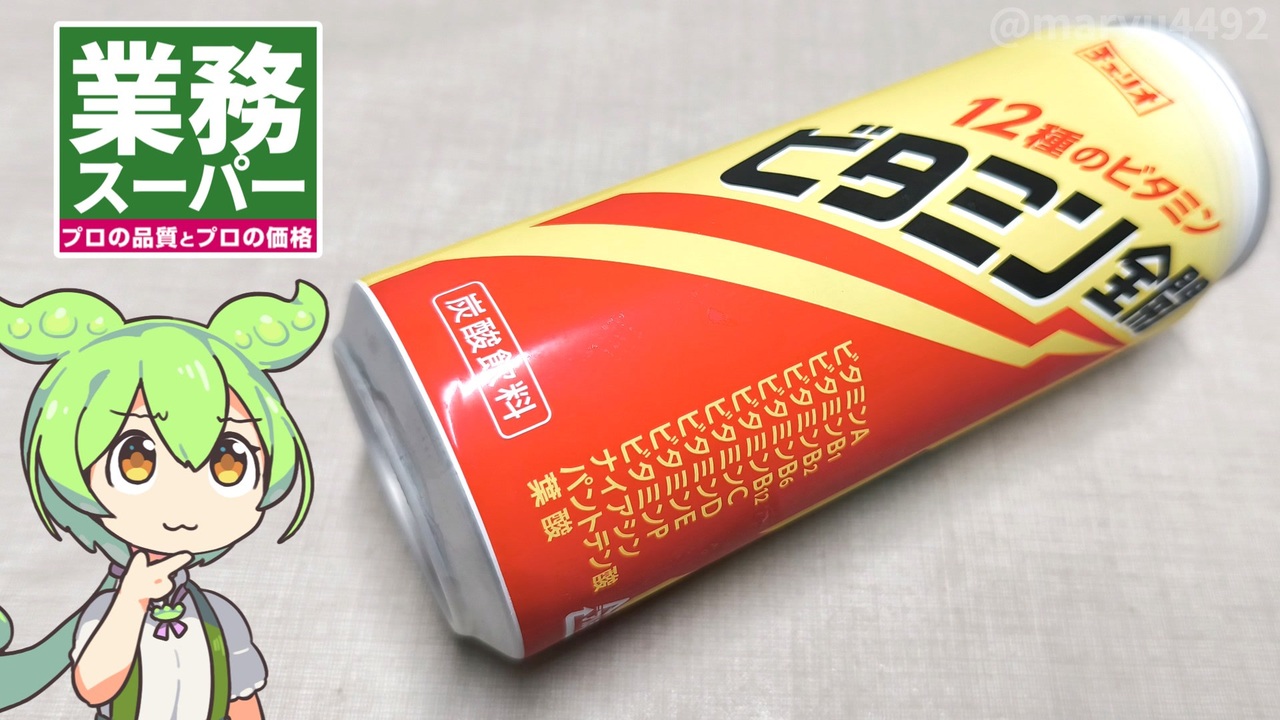 業務スーパーのドリンクコーナーで<br>黄と赤と太い文字でデザインされた炭酸飲料が安く販売されていたので<br>どんな味なんだろうと気になり、買ってみることにしました。<br><br><br><br>【関連動画】<br>ファミリーマートの「ざっくり40%増量作戦 <br>ロースかつカレーとライフガード」2025.08.06<br><a href="https://www.nicovideo.jp/watch/sm45260958" target="_blank" rel="noopener nofollow">https://www.nicovideo.jp/watch/sm45260958</a><br><br>【参考】<br>ビタミン全開(チェリオ)<br><a href="https://www.cheerio.co.jp/lineup/%e3%83%93%e3%82%bf%e3%83%9f%e3%83%b3%e5%85%a8%e9%96%8b-2/" target="_blank" rel="noopener nofollow">https://www.cheerio.co.jp/lineup/%e3%83%93%e3%82%bf%e3%83%9f%e3%83%b3%e5%85%a8%e9%96%8b-2/</a><br>コーヒーのカフェイン量はどのくらい?「カフェインレス」「ノンカフェイン」など<br>言葉の違いや効果について解説 2025.02.05(キーコーヒー)<br><a href="https://www.keycoffee.co.jp/experience/knowledge/detail/about-caffeine-in-coffee/" target="_blank" rel="noopener nofollow">https://www.keycoffee.co.jp/experience/knowledge/detail/about-caffeine-in-coffee/</a><br><br>【使用した素材】(※敬称略)<br>(合成音声)VOICEVOX/ずんだもん/四国めたん<br><a href="https://voicevox.hiroshiba.jp/" target="_blank" rel="noopener nofollow">https://voicevox.hiroshiba.jp/</a><br>(立ち絵)坂本アヒル<br><a href="https://seiga.nicovideo.jp/seiga/m10788496/im10791276" target="_blank" rel="noopener nofollow">https://seiga.nicovideo.jp/seiga/m10788496/im10791276</a><br>(楽曲)甘茶の音楽工房/「日々是好日」「残業戦士」<br><a href="https://amachamusic.chagasi.com" target="_blank" rel="noopener nofollow">https://amachamusic.chagasi.com</a>