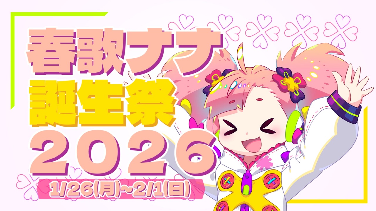 <span style="font-size: 16px;"><strong>17周年を迎える春歌ナナちゃんを、みんなで作品を投稿してお祝いしたい!!</strong></span><br> ということで 、春歌ナナ誕生祭2026 を開催します!<br><br> 期間:2026年1月26日(月)~2月1日(日) <br><br>ナナちゃんの誕生日1月30日を含んだ7日間です<br>ぜひ参加していただけるとうれしいです!<br><br>【レギュレーション】<br>①春歌ナナちゃんがメインで登場する作品を、 <br>② ニコニコ動画・ニコニコ静画・twitter(別名X)に、<br>③指定のタグをつけて投稿してください!<br><br>ニコニコ用タグ:春歌ナナ誕生祭2026<br>twitterハッシュタグ:#春歌ナナ誕生祭2026<br>ニコニコの場合は本人によるタグ付けであることを確認するために、タグロックをお願いします。<br><br>ご質問がありましたら動画へのコメントか、以下のマシュマロまでお願いします。<br><a href="https://marshmallow-qa.com/lfo2gvr95vwxqk2?t=wUxQ6x&utm_medium=url_text&utm_source=promotion" target="_blank" rel="noopener nofollow">https://marshmallow-qa.com/lfo2gvr95vwxqk2?t=wUxQ6x&utm_medium=url_text&utm_source=promotion</a><br><br>※こちらのイベントは春歌ナナちゃんのファンによる、非公式のユーザー企画投稿祭です。<br>イベント内容について公式様にお問い合わせをすることは公式様のご迷惑につながりますので、ご遠慮いただきますようお願いいたします。<br /><br><br>+++++++++++++++++++++<br>マイリスト<br> <a href="https://www.nicovideo.jp/mylist/59858060" target="_blank" rel="noopener">mylist/59858060</a> (ボードゲーム系)<br> <a href="https://www.nicovideo.jp/mylist/64427209" target="_blank" rel="noopener">mylist/64427209</a> (音楽系)<br> <a href="https://www.nicovideo.jp/mylist/70454523" target="_blank" rel="noopener">mylist/70454523</a> (その他 劇場など)<br><br>X(旧twitter):<a href="https://twitter.com/harukanaigo" target="_blank" rel="noopener nofollow">https://twitter.com/harukanaigo</a>