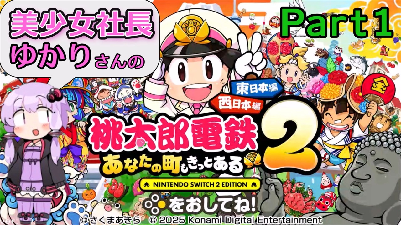 ゆかりさんが桃鉄新作で社長に就任しました。<br>3年決戦で東日本編で遊んでいきます。<br>美少女社長は無事に1位でゴールできるのか?<br><br>本体:Nintendo Switch2<br>立ち絵:結月ゆかり、紲星あかり:ini様<br>編集:YMM4<br>枝豆背景:<a href="https://commons.nicovideo.jp/works/nc224632" target="_blank" rel="noopener">nc224632</a><br>BGM:<a href="https://commons.nicovideo.jp/works/nc417426" target="_blank" rel="noopener">nc417426</a><br><br>次:<a href="https://www.nicovideo.jp/watch/sm45702466" class="watch">sm45702466</a><br><br>桃鉄2マイリスト:my/<a href="https://www.nicovideo.jp/mylist/79044002" target="_blank" rel="noopener">mylist/79044002</a><br><br>他シリーズ<br>VS.マリオマイリスト:<a href="https://www.nicovideo.jp/mylist/78965653" target="_blank" rel="noopener">mylist/78965653</a><br>がんばれゴエモン2マイリスト:<a href="https://www.nicovideo.jp/mylist/77305126" target="_blank" rel="noopener">mylist/77305126</a><br>桃鉄12ハンデ戦:<a href="https://www.nicovideo.jp/mylist/77175521" target="_blank" rel="noopener">mylist/77175521</a><br>ロックマン4:<a href="https://www.nicovideo.jp/mylist/76848069" target="_blank" rel="noopener">mylist/76848069</a><br>大魔界村:<a href="https://www.nicovideo.jp/mylist/75939295" target="_blank" rel="noopener">mylist/75939295</a><br>悪魔城ドラキュラ:<a href="https://www.nicovideo.jp/mylist/75476608" target="_blank" rel="noopener">mylist/75476608</a><br>がんばれゴエモン:<a href="https://www.nicovideo.jp/mylist/74012790" target="_blank" rel="noopener">mylist/74012790</a><br>ロックマン6:<a href="https://www.nicovideo.jp/mylist/73091196" target="_blank" rel="noopener">mylist/73091196</a><br>ロックマン2:<a href="https://www.nicovideo.jp/mylist/72171517" target="_blank" rel="noopener">mylist/72171517</a><br>Part1&単発:<a href="https://www.nicovideo.jp/mylist/72473129" target="_blank" rel="noopener">mylist/72473129</a><br><br>Twitter:<a href="https://twitter.com/halu_halu_99" target="_blank" rel="noopener nofollow">https://twitter.com/halu_halu_99</a>