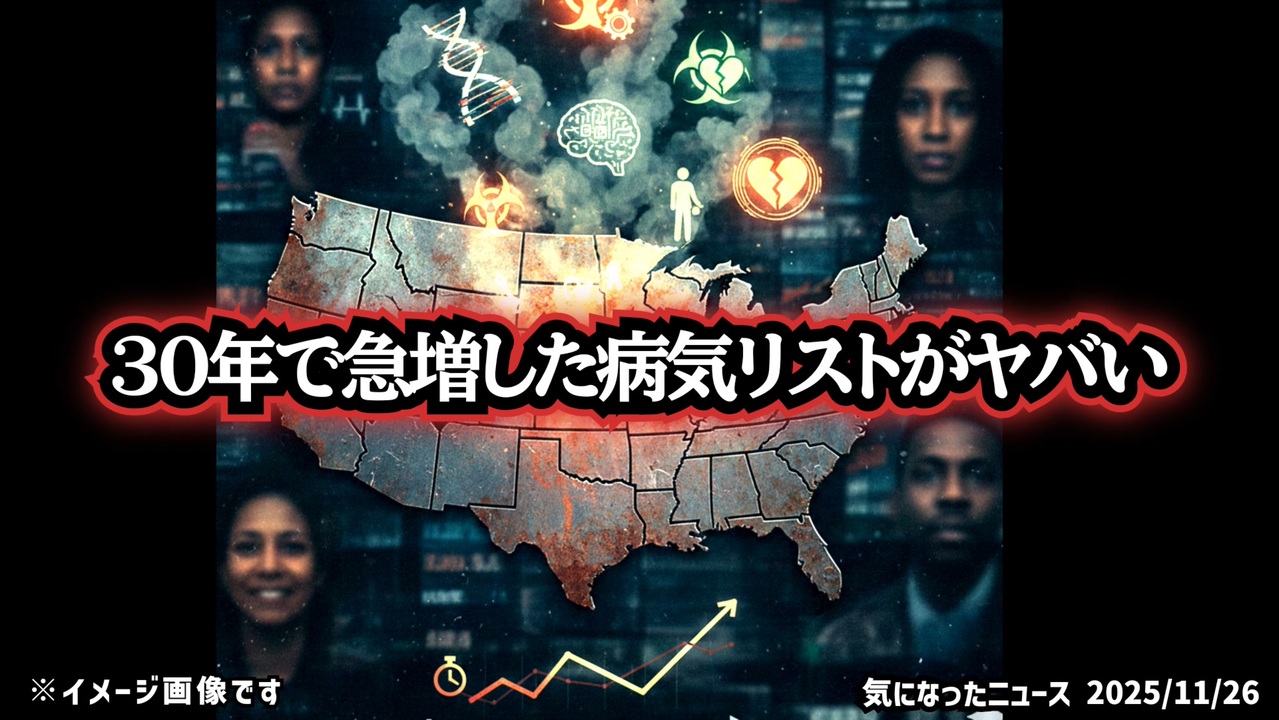 【日本は大丈夫?】◆30年で急増した病気リストがヤバい ~ アメリカ国民の健康危機、慢性疾患が過去最大の増加を記録<br><br>30年で急増した病気リストがヤバい<br><br>あらすじ<br>近年、アメリカでは特定の慢性疾患が異常ともいえるペースで増加し、国全体の健康を揺るがす深刻な問題へと発展しています。子どもの発達特性から自己免疫疾患、代謝の異常、さらには慢性的な痛みや疲労まで、その広がりは世代を超え、生活の質そのものを脅かしています。いま水面下で進む変化は、単なる統計の話ではなく、社会構造と医療の在り方を揺さぶる“見えない波”。この先の本編では、その波がどのように生まれ、なぜここまで大きくなったのか――その背景と核心に迫ります。<br><br>◆今回の台本&詳細<a href="https://keiichiro8140.hatenablog.com/entry/25112666333999" target="_blank" rel="noopener nofollow">https://keiichiro8140.hatenablog.com/entry/25112666333999</a><br><br>◆これまでの動画<a href="https://x.gd/sPXoJ" target="_blank" rel="noopener nofollow">https://x.gd/sPXoJ</a><br><br>◆もしも(BAN)の時のためのマイリンク集<a href="https://lit.link/K-16-news-44" target="_blank" rel="noopener nofollow">https://lit.link/K-16-news-44</a><br><br>ご覧いただきありがとうございます<br>m(_ _)m<br>気になったニュース 2025/11/26<br><br />著作権、肖像権に配慮して作成しております。<br><br>◆気になったニュースの台本!?<br>メモ代わりに作った台本をそのままあげてます<br><a href="https://keiichiro8140.hatenablog.com/." target="_blank" rel="noopener nofollow">https://keiichiro8140.hatenablog.com/.</a><br><br><br>ここからはシリーズ紹介<br><br><br>◆ ワクチン解毒・デトックス<br><a href="https://x.gd/fZweg" target="_blank" rel="noopener nofollow">https://x.gd/fZweg</a><br><br>◆ウイリアム・マキス博士のがん治療(イベルメクチン・フェンベンダゾール等)<br><a href="https://x.gd/AtFYS" target="_blank" rel="noopener nofollow">https://x.gd/AtFYS</a><br><br>◆予防接種健康被害救済制度<br><a href="https://x.gd/0xK9x" target="_blank" rel="noopener nofollow">https://x.gd/0xK9x</a><br><br>◆気になったニュース #1501~<br><br>◆ 【ショートver】気になったニュース<br><a href="https://x.gd/7MxXC" target="_blank" rel="noopener nofollow">https://x.gd/7MxXC</a><br><br>◆ 気になったニュース #1001~<br><a href="https://x.gd/Lp8gv" target="_blank" rel="noopener nofollow">https://x.gd/Lp8gv</a><br><br>◆ 気になったニュース #501~<br><a href="https://x.gd/EmbS4" target="_blank" rel="noopener nofollow">https://x.gd/EmbS4</a><br><br>◆ 気になったニュース #1~#500<br><a href="https://x.gd/uPhNb" target="_blank" rel="noopener nofollow">https://x.gd/uPhNb</a><br><br>◆ X(旧Twitter)・テレグラムで気になった情報<br><a href="https://x.gd/YG6FT" target="_blank" rel="noopener nofollow">https://x.gd/YG6FT</a><br><br>◆ 日比谷5万人パレードデ⚪生放送アーカイブ動画<br><a href="https://x.gd/3CHJv" target="_blank" rel="noopener nofollow">https://x.gd/3CHJv</a><br><br>◆日比谷5万人パレード⚪モのマイリスト作ってみました<br><a href="https://nico.ms/mylist/76828848?ref=sp_other" target="_blank" rel="noopener nofollow">https://nico.ms/mylist/76828848?ref=sp_other</a><br><br>◆3.30 令和の百姓⚪⚪<br><a href="https://www.nicovideo.jp/series/511791?ref=garage_share_other" target="_blank" rel="noopener nofollow">https://www.nicovideo.jp/series/511791?ref=garage_share_other</a><br><br>◆ 及川幸久さんの【XNEWS】シリーズ<br><a href="https://x.gd/3k78K" target="_blank" rel="noopener nofollow">https://x.gd/3k78K</a><br><br>◆これまでの動画<a href="https://x.gd/sPXoJ" target="_blank" rel="noopener nofollow">https://x.gd/sPXoJ</a><br><br>◆もしも(BAN)の時のためのマイリンク集<a href="https://lit.link/K-16_News44" target="_blank" rel="noopener nofollow">https://lit.link/K-16_News44</a><br><br>