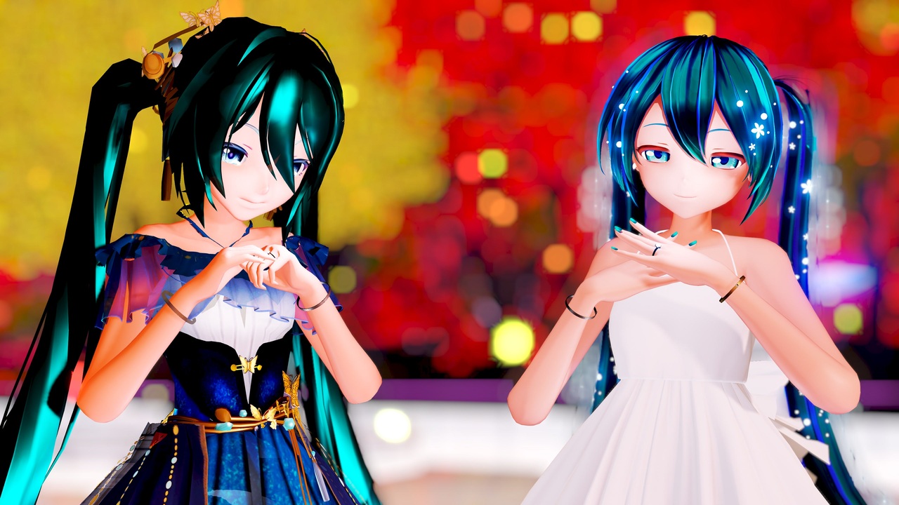 おふたりのミクさんによる『Twinkle Days』です。<br>お借りしたもの<br><br>Music: 19 -iku-様/<a href="https://www.nicovideo.jp/watch/sm20629168" class="watch">sm20629168</a><br>唄: 初音ミクさん<br><br>Motion&<br>camera: しろたび様/<a href="https://www.nicovideo.jp/watch/sm31079562" class="watch">sm31079562</a><br>トレース元: *°夢華゜*様/<a href="https://www.nicovideo.jp/watch/sm27556869" class="watch">sm27556869</a><br><br>Model: <br>Sour式改変夜蝶初音ミク/モデル改変: 白苓様 <a href="https://www.bilibili.com/video/BV1U7411G7wa/" target="_blank" rel="noopener nofollow">https://www.bilibili.com/video/BV1U7411G7wa/</a><br>カルも様/カルも式初音ミクver2.7(白ワンピ)/<a href="https://seiga.nicovideo.jp/seiga/im8471305" target="_blank" rel="noopener">im8471305</a><br><br>Bracelet: KEITEL様/<a href="https://seiga.nicovideo.jp/seiga/im8046728" target="_blank" rel="noopener">im8046728</a><br>Ring: 操ちゃん/<a href="https://seiga.nicovideo.jp/seiga/im11278551" target="_blank" rel="noopener">im11278551</a><br>Earring: 操ちゃん/<a href="https://seiga.nicovideo.jp/seiga/im9541033" target="_blank" rel="noopener">im9541033</a><br><br>stage: くてるに様/GlassyTreeStage -Sakura- /<a href="https://seiga.nicovideo.jp/seiga/im10720592" target="_blank" rel="noopener">im10720592</a><br>Ray MMD Ruiさん <a href="https://github.com/ray-cast/ray-mmd" target="_blank" rel="noopener nofollow">https://github.com/ray-cast/ray-mmd</a><br><br>★以上ありがとうございました。<br>『Twinkle Days』は過去メイン側で2回ほど制作していますが<br>Lili様のエノコログサちゃん&クコちゃんの『Twinkle Days』(<a href="https://www.nicovideo.jp/watch/sm35105843" class="watch">sm35105843</a>)の影響が大きくて<br>共に身長差コンビでした。今回初めて等身の揃っているモデルさんおふたりの『Twinkle Days』です。<br><br>でもNight Butterfly Mikuさんが妹を見守る様な眼差し、<br>カルも式ミクさんの少しあどけなく安心しきっている笑顔には同じような雰囲気が感じられます。<br><br>★カルも式白ワンピミクさんに靴を履いて頂きました。カルも式ミクさんは基本改造禁止なのですけど<br>一部他のカルも式ミクさんのパーツの場合は認めて頂けるケースがあるので、<br>カルも様に確認、承認を頂き宇宙ワンピミクさんの靴をコンバートさせて頂きました、<br>そしてアレンジして屈折の高いガラスの雰囲気にしました。カルも様にお礼を申し上げます。<br><br>★広告のお礼を右記でさせて頂きました、ありがとうございました/<a href="https://seiga.nicovideo.jp/seiga/im11708418" target="_blank" rel="noopener">im11708418</a><br><br><a target="_blank" href="https://qa.nicovideo.jp/faq/show/19424?site_domain=default" style="font-size: 13px;color: #657586; text-decoration: underline; line-height: 1.4">この動画は投稿者によって修正されました</a>