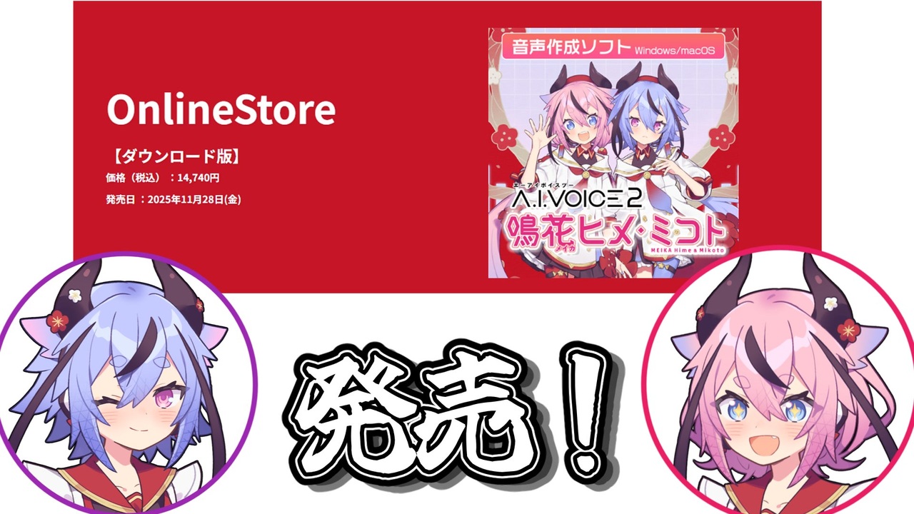 ヒメ「<a href="https://www.gynoid.co.jp/items/view/19」" target="_blank" rel="noopener nofollow">https://www.gynoid.co.jp/items/view/19」</a><br>ミコト「ちゃんと新発売のリンク貼りなよ」<br><br><span style="font-size: 16px;">☆鳴花ヒメ・ミコト A.I.VOICE2発売おめでとうございます!☆</span><br><span style="font-size: 16px;"><strong><a href="https://aivoice.jp/product/aivoice2_himemikoto/" target="_blank" rel="noopener nofollow">https://aivoice.jp/product/aivoice2_himemikoto/</a></strong></span><br><br>あすまや様<a href="https://www.nicovideo.jp/user/61687133" target="_blank" rel="noopener nofollow">https://www.nicovideo.jp/user/61687133</a> <br>の「ふたセリフ」シリーズのリスペクト動画です。(勝手に作りました)<br>本家シリーズ→<a href="https://www.nicovideo.jp/user/61687133/series/299667" target="_blank" rel="noopener nofollow">https://www.nicovideo.jp/user/61687133/series/299667</a><br><br><br><br><br>・登場キャラクター<br>ガイノイドトーク→鳴花ヒメ 鳴花ミコト<br><br>・使用させていただいた素材<br>コンテンツツリー及び動画EDをご参照ください。<br><br>・投稿者Twitter(あと120個くらいふたセリフを貯めてる怖いアカウントです)<br><a href="https://twitter.com/raikan_niconico" target="_blank" rel="noopener nofollow">https://twitter.com/raikan_niconico</a><br>