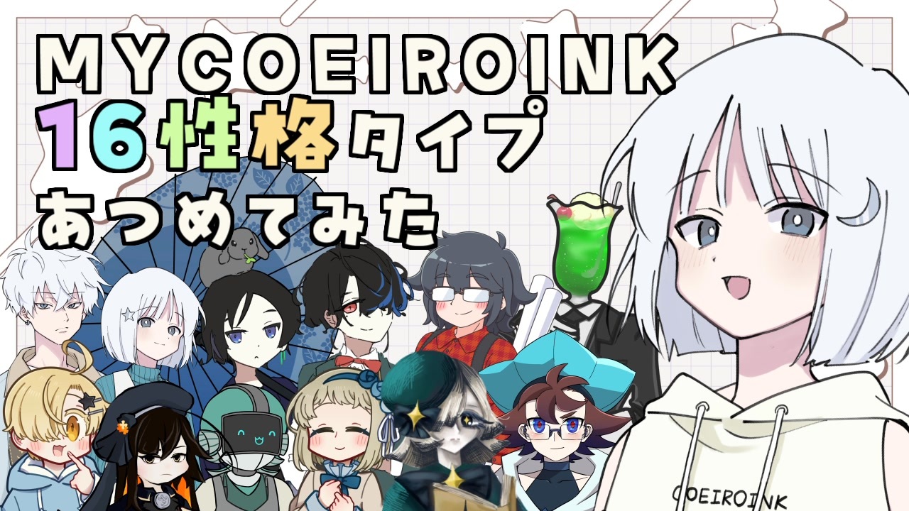 COEIROINK投稿祭お疲れさまでした!<br>5分想定の動画が20分に膨らみ余裕の遅刻勢のINFPです。<br><br>MYCOEIROINKでMBTI16性格タイプを集めてみました。<br>解説は、1週間くらいの勉強で得た知識なのでふわっとしてます。<br>また、MYCOEさんたちの性格は公式のものではありません。制作者様たちが個人的に乗ってくれた二次創作です。他の方が動画を作る際に基準にしなければならないものではありません。<br><br>【MYCOEMBTIタイプ募集中!】<br>ネタバレになりますが実は全タイプ揃っていません!<br>ご興味のあるMYCOE制作者様は、<br><br>#MYCOE16性格タイプ<br><br>のタグをつけてXで診断結果を投稿してみてください。<br>(または@tittirikuzuまでDMで送ってください。)<br><br>簡易診断(MBTI本家ではありません)<br><a href="https://www.16personalities.com/ja" target="_blank" rel="noopener nofollow">https://www.16personalities.com/ja</a><br><br>推しMYCOEがいるみなさんは、<br>この子は〇〇〇〇タイプかも!と予想ができそうなら教えてください!<br>(MYCOEさんの規約に制限がある場合は守ってください。)<br><br>何卒よろしく願いします!<br><br>【出演キャラクター・音声】<br>COEIROINK:ナコ<br>COEIROINK:レコ<br>COEIROINK:カナタ<br>COEIROINK:MANA(ナコちゃんの声)<br>COEIROINK:つくよみちゃん(レコちゃんの声)<br>COEIROINK:おふとんP(カナタくんの声)<br>COEIROINK:A-アドリフター<br>COEIROINK:ウニョール<br>COEIROINK:音海ひとで<br>COEIROINK:車城翡翠(立ち絵改変)<br>COEIROINK:【月喰兎尸】<br>COEIROINK:戸隠栞(立ち絵改変)<br>COEIROINK:春夏秋冬彩世(立ち絵改変)<br>COEIROINK:幻中あじさい(立ち絵改変)<br>COEIROINK:束音花<br>COEIROINK:列音静<br><br>【COEIROINK】<br><a href="https://coeiroink.com/" target="_blank" rel="noopener nofollow">https://coeiroink.com/</a><br><br>【音源配布所】※親作品登録のないもの<br>春夏秋冬彩世:<a href="https://cafe-hitotose.studio.site/HitotoseAyase" target="_blank" rel="noopener nofollow">https://cafe-hitotose.studio.site/HitotoseAyase</a><br>幻中あじさい:<a href="https://cafe-hitotose.studio.site/MamonakaAjisai" target="_blank" rel="noopener nofollow">https://cafe-hitotose.studio.site/MamonakaAjisai</a><br><br>【お借りした素材】<br>MANAボイス素材レベル9<br><a href="https://manakana-vt.booth.pm/items/3884645" target="_blank" rel="noopener nofollow">https://manakana-vt.booth.pm/items/3884645</a>