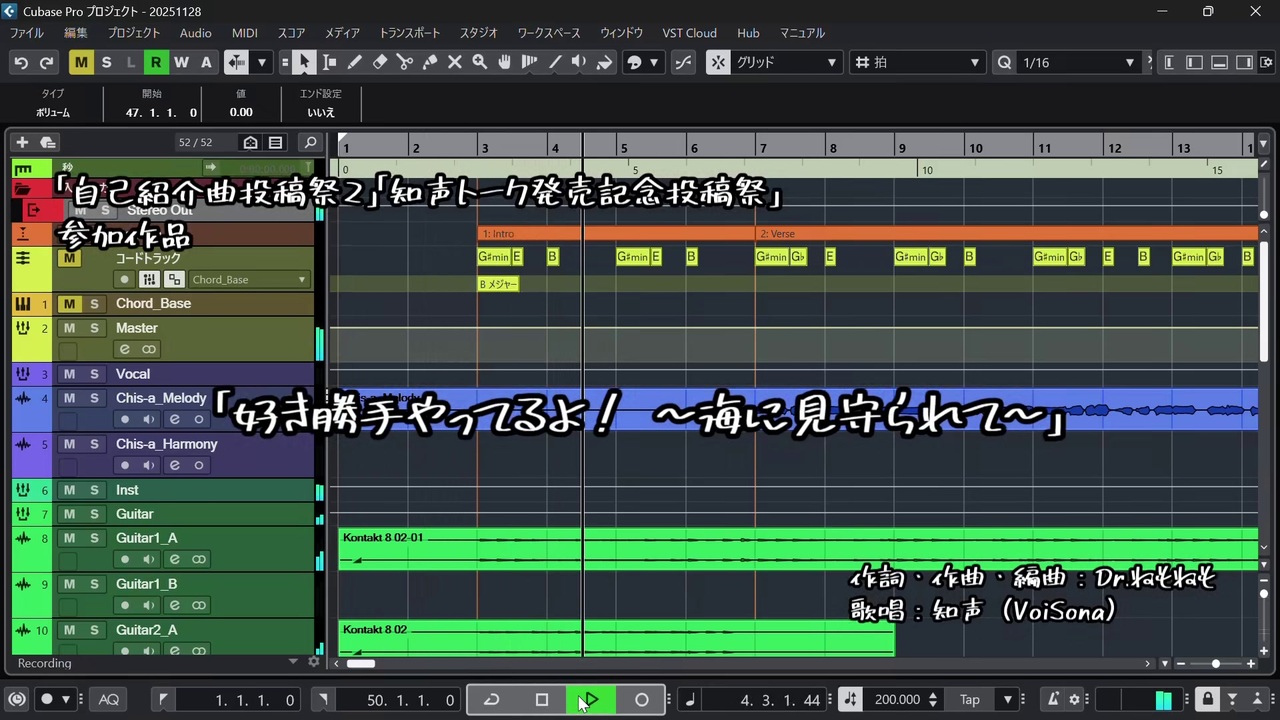 桃胡桃様 ( <a href="https://www.nicovideo.jp/user/130409542" target="_blank" rel="noopener">user/130409542</a> )、ミキヲト様 ( <a href="https://www.nicovideo.jp/user/123217975" target="_blank" rel="noopener">user/123217975</a> ) 共同主催の「自己紹介曲投稿祭2」への参加作品です。<br><br>制作期間約2日、突貫工事でなんとか完成させた最新版の自己紹介曲です。<br>2025年もいろいろなことに挑戦しました。<br>ボカデュオでは生まれて初めて歌い手さんに曲を書いたり。<br>他の方が作曲された曲の調声を担当したり。<br>そして、年末にはデジタルアルバムもリリース予定です。<br><br>2026年ももっと新しいことに挑戦していきたいと考えています。<br>引き続き応援よろしくお願いいたします。<br><br><br>「自己紹介曲投稿祭2」「知声トーク発売記念投稿祭」参加作品<br>「好き勝手やってるよ!~海に見守られて~」<br><br>作詞・作曲・編曲・動画制作:Dr.ねもねも<br>歌唱:知声 (VoiSona)<br><br>主催者:桃胡桃様 <a href="https://twitter.com/momogurumi_2023" target="_blank" rel="noopener nofollow">https://twitter.com/momogurumi_2023</a><br> ミキヲト様 <a href="https://twitter.com/mikiwoto" target="_blank" rel="noopener nofollow">https://twitter.com/mikiwoto</a><br><br>Dr.ねもねものTwitterはこちら<a href="https://twitter.com/Dr_nemonemo" target="_blank" rel="noopener nofollow">https://twitter.com/Dr_nemonemo</a>