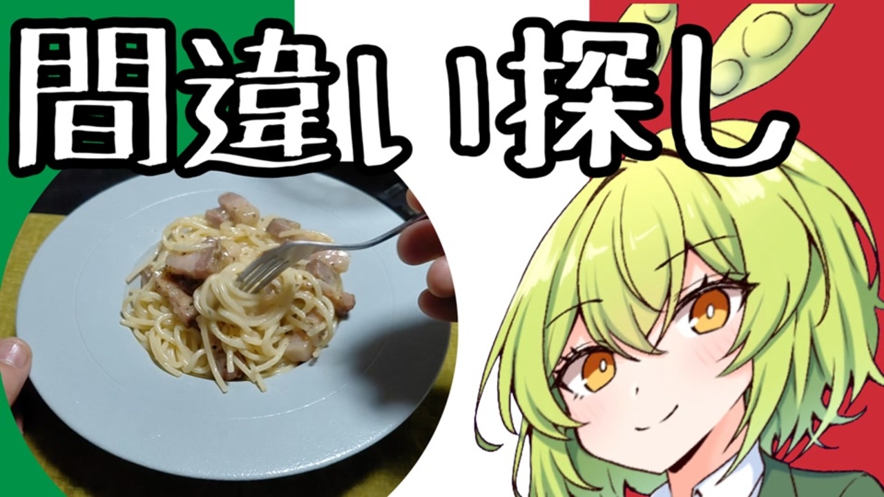 想定解:<br>パスタを折る<br>玉ねぎを入れる<br>グアンチャーレを使わない<br>生クリームを使う<br>麺を箸ですする<br><br>アンケートにご協力ください<br><a href="https://forms.gle/R8dbLwrWHagrwyK16" target="_blank" rel="noopener nofollow">https://forms.gle/R8dbLwrWHagrwyK16</a><br><br>『追走したくなる料理動画祭』<br>開催日:<br>2026年2月13日~22日<br>レギュレーション:<br>・『追走してほしい』料理動画を作る<br>・『追走したくなる料理動画祭』タグロック<br>・告知動画の親作品登録<br>禁止事項:<br>・食べ物でないものを食べる<br>・極度に不衛生、不安全な行為<br>・違法行為<br>・食べ物を粗末に扱う行為<br>視聴者様へのお願い:<br>・いつもよりに気軽に追走してほしい<br>・追走したら知らせて欲しい<br><br>『料理動画追走祭』<br>開催期間:<br>2026年3月13日~15日<br>レギュレーション:<br>・ニコニコに投稿された料理動画の<br> 追走動画を投稿する(本企画と無関係でも良い)<br>・『料理動画追走祭』タグロック<br>・告知動画の親作品登録<br>禁止事項:<br>・食べ物でないものを食べる<br>・極度に不衛生、不安全な行為<br>・違法行為<br>・食べ物を粗末に扱う行為<br><br>Voicepeak:ずんだもん<br>BGMはMusMusより<br>