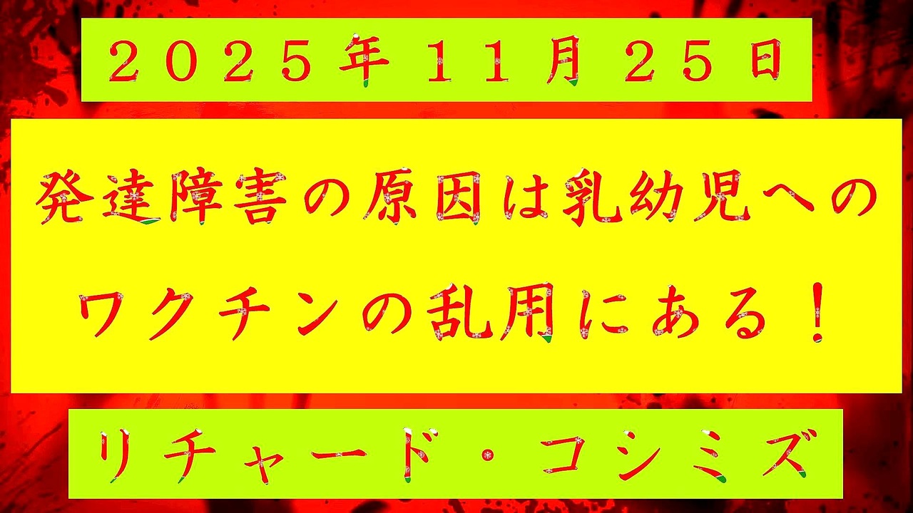 <span style="color: #ff0000;"><strong>◐『 発達障害 』の『 原因 』は、『 乳幼児 』への『 ワクチン 』の『 乱用 』にある!</strong></span><br><br> <span style="color: #38761d;"><strong>◐『「 リチャード・コシミズ・チャンネル 」</strong></span><span style="color: #ff0000;"><strong>⦅ ニコニコ チャンネル ⦆</strong></span><span style="color: #38761d;"><strong>』</strong></span><br> <span style="color: #0000ff;"><strong><a href="https://ch.nicovideo.jp/richardkoshimizu" target="_blank" rel="noopener nofollow">https://ch.nicovideo.jp/richardkoshimizu</a></strong></span><br><br><span style="color: #38761d;"><strong> ◐『「 リチャード・コシミズ 講演会 」</strong></span><span style="color: #ff0000;"><strong>公式「 動画ギャラリー 」⦅ 最新動画 ⦆⦅ YouTube版 ⦆</strong></span><span style="color: #38761d;"><strong>』</strong></span><br> <span style="color: #0000ff;"><strong><a href="https://www.youtube.com/@richardkoshimizu-video-gallery" target="_blank" rel="noopener nofollow">https://www.youtube.com/@richardkoshimizu-video-gallery</a></strong></span><br><br> <span style="color: #38761d;"><strong>◐『「 リチャード・コシミズ 講演会 」</strong></span><span style="color: #ff0000;"><strong>公式「 動画ギャラリー 」⦅ テーマ別 ⦆⦅ YouTube版 ⦆</strong></span><span style="color: #38761d;"><strong>』</strong></span><br> <span style="color: #0000ff;"><strong><a href="https://www.youtube.com/@RK-Video-Gallery2" target="_blank" rel="noopener nofollow">https://www.youtube.com/@RK-Video-Gallery2</a></strong></span><br>