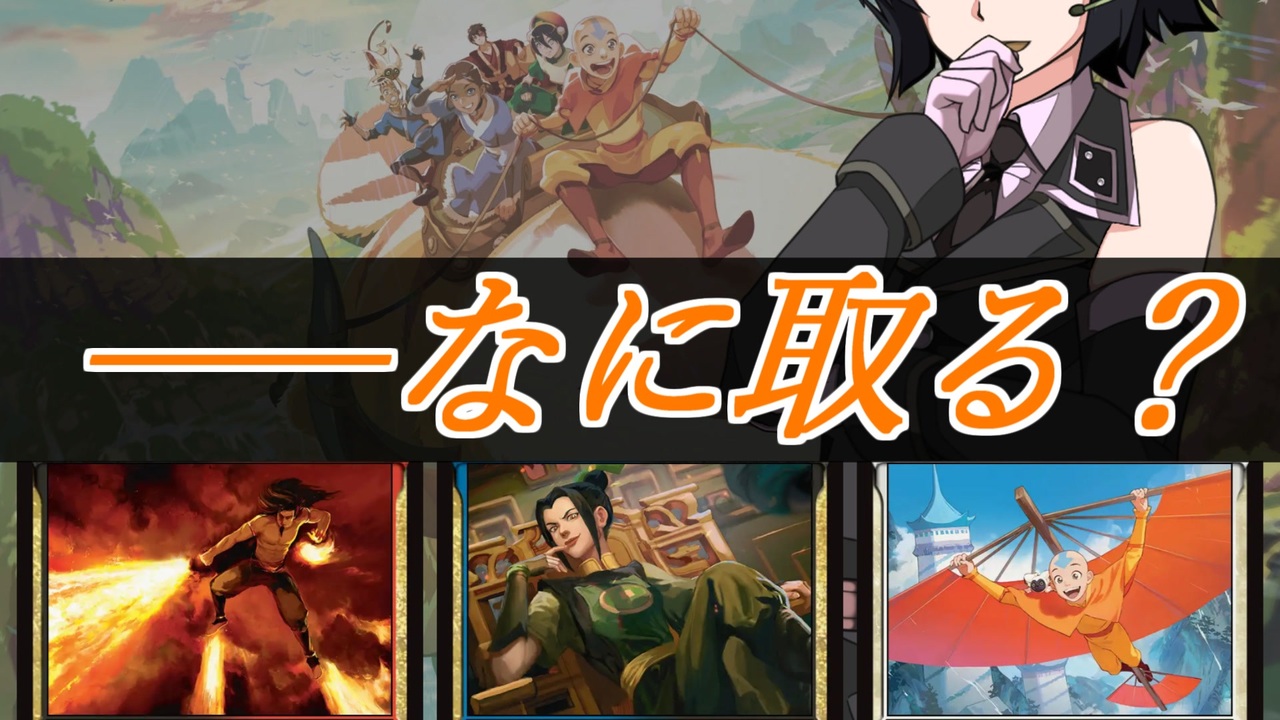 <span style="font-size: 18px;"><strong>[</strong></span><span style="font-size: 18px;"><strong><u>Replay</u></strong></span><span style="font-size: 18px;"><strong>]</strong></span><span style="font-size: 16px;"><strong> (17Lands)</strong></span><br><span style="font-size: 16px;"><a href="https://www.17lands.com/details/ce10b2d1e34040f5961cf9b4d98f9c23" target="_blank" rel="noopener nofollow">https://www.17lands.com/details/ce10b2d1e34040f5961cf9b4d98f9c23</a></span><br><br><strong><u>[この動画について]</u></strong><br>・MTGA(Magic: The Gathering Arena・MTGアリーナ)の対人ドラフトピック譜を紹介します。<br>・今回は「アバター 伝説の少年アン」(TLA)を扱います。<br>・「京町セイカの連コイン戦略」はファンコンテンツ・ポリシーに沿った非公式のファンコンテンツです。ウィザーズ社の認可/許諾は得ていません。題材の一部に、ウィザーズ・オブ・ザ・コースト社の財産を含んでいます。©Wizards of the Coast LLC.<br><br><strong>[使用させて頂いた素材]</strong><br>・立ち絵(一部改変): 物見戸 様 <a href="https://seiga.nicovideo.jp/seiga/im8031714" target="_blank" rel="noopener">im8031714</a><br>・BGM: Khaim 様 <a href="https://www.khaimmusic.com/" target="_blank" rel="noopener nofollow">https://www.khaimmusic.com/</a><br><br><strong><u>[リンク]</u></strong><br>・『アバター 伝説の少年アン』カードイメージギャラリー<br> <a href="https://magic.wizards.com/ja/products/avatar-the-last-airbender/card-image-gallery" target="_blank" rel="noopener nofollow">https://magic.wizards.com/ja/products/avatar-the-last-airbender/card-image-gallery</a><br>・メカニズム<br> <a href="https://mtg-jp.com/reading/publicity/0038864/" target="_blank" rel="noopener nofollow">https://mtg-jp.com/reading/publicity/0038864/</a><br /><br><strong>[投稿シリーズ]</strong><br> <a href="https://www.nicovideo.jp/series/14252" target="_blank" rel="noopener">series/14252</a> : 京町セイカの連コイン戦略 (MTGA・リミテッド)<br> <a href="https://www.nicovideo.jp/series/14256" target="_blank" rel="noopener">series/14256</a> : 京町セイカのワンコインMO生活 (MO・以前のスタンダード)<br> <a href="https://www.nicovideo.jp/series/14250" target="_blank" rel="noopener">series/14250</a> : 京町セイカは勝ち越したかったり成果発表したり (MTGA・スタンダード)<br><br><span style="font-size: 13px;"><strong>[その他]</strong></span><br> [X] <a href="https://x.com/takuwan_takusan" target="_blank" rel="noopener nofollow">https://x.com/takuwan_takusan</a><br> [YouTube] <a href="https://www.youtube.com/@京町セイカの連コイン戦略" target="_blank" rel="noopener nofollow">https://www.youtube.com/@京町セイカの連コイン戦略</a><br> [note] <a href="https://note.com/takuwantakusan" target="_blank" rel="noopener nofollow">https://note.com/takuwantakusan</a>