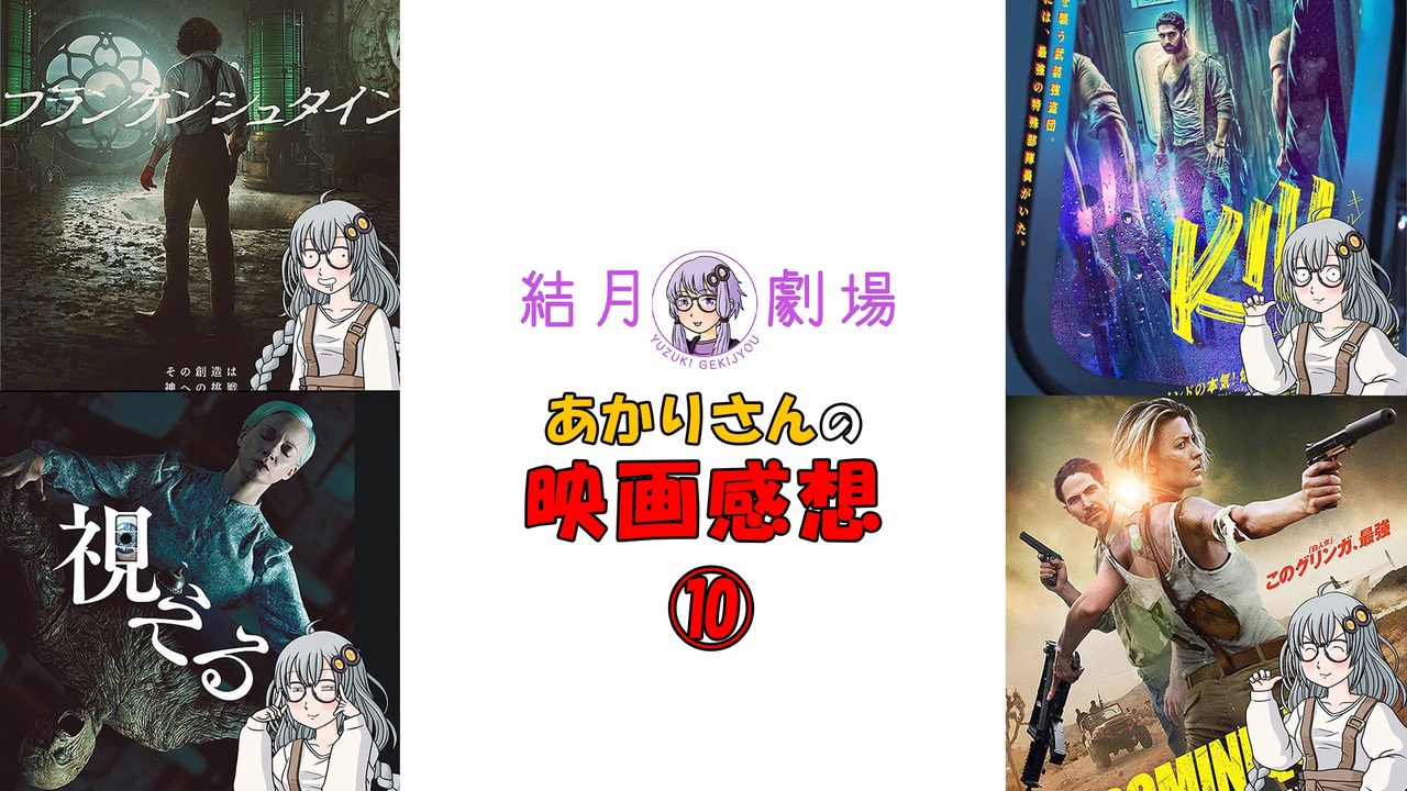 ゆかりさんに勧められた映画を見たあかりさんの感想です<br><br>※先にゆかりさんの紹介動画を見ることをお勧めします<br><br>・フランケンシュタイン:<a href="https://www.nicovideo.jp/watch/sm45617065" class="watch">sm45617065</a><br>・視える:<a href="https://www.nicovideo.jp/watch/sm45627268" class="watch">sm45627268</a><br>・KILL 超覚醒:<a href="https://www.nicovideo.jp/watch/sm45641577" class="watch">sm45641577</a><br>・ドミニク 孤高の反逆者:<a href="https://www.nicovideo.jp/watch/sm45652003" class="watch">sm45652003</a><br><br><br><br>結月さんの映画紹介YouTubeチャンネル<br><a href="https://www.youtube.com/@YuzukiGekijyou" target="_blank" rel="noopener nofollow">https://www.youtube.com/@YuzukiGekijyou</a><br><br>