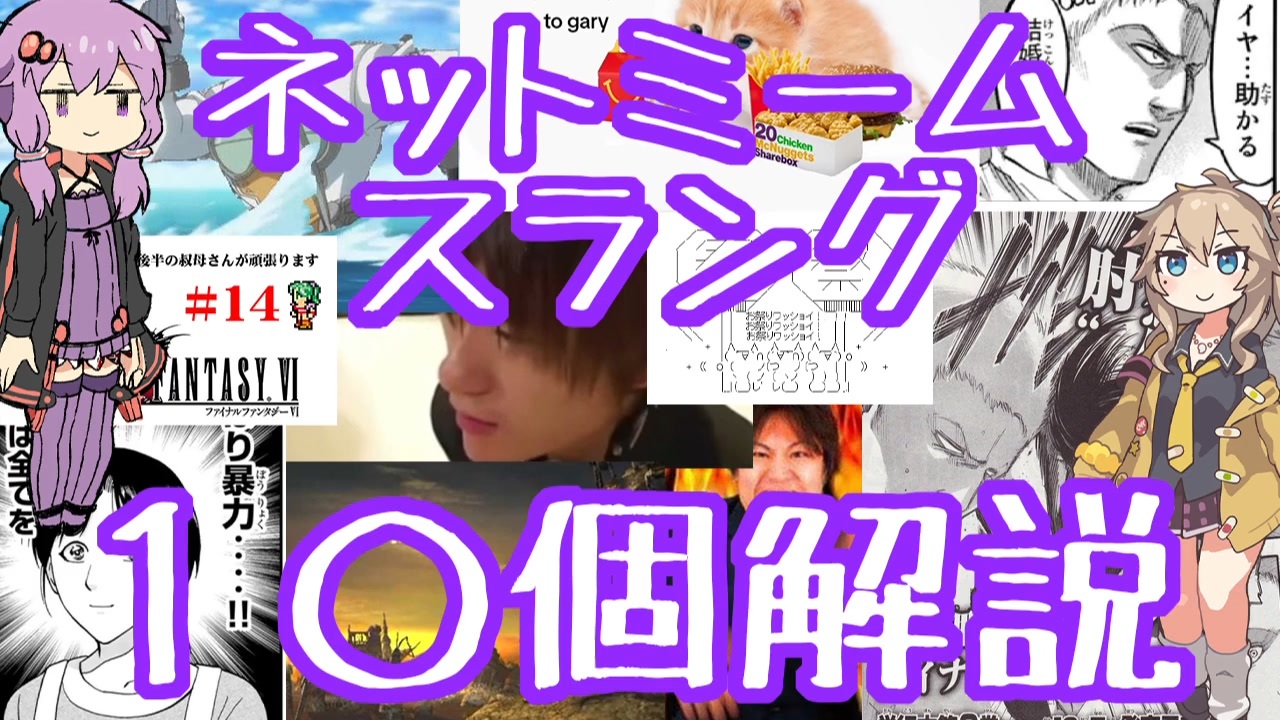 ネットでよく見かけるネタの元ネタなどを10個解説しています<br><br>やっと時かけを観ました<br><br>1.炎上<br>2.祭り<br>3.大丈夫?結婚する?<br>4.結婚しよ<br>5.暴力は全てを解決する<br>6.特に理由の無い暴力がライナーを襲う!!<br>7.はえーよホセ<br>8.俺死んでしまうストーリー<br>9金金って言うんじゃねぇよガキのくせにオォン!?<br>10.ゲイリーにありがとうと言って<br><br><br>前⇒<a href="https://www.nicovideo.jp/watch/sm45669353" class="watch">sm45669353</a><br>次⇒<a href="https://www.nicovideo.jp/watch/sm45713978" class="watch">sm45713978</a><br>番外編⇒<a href="https://www.nicovideo.jp/watch/sm45669639" class="watch">sm45669639</a><br>part1⇒<a href="https://www.nicovideo.jp/watch/sm43894948" class="watch">sm43894948</a><br>解説済みのネタ一覧⇒<a href="https://docs.google.com/spreadsheets/d/13ZNY49m_mK0AZokz-TjV85o_aGCffPzBl7MtOX9wdow/edit?gid=0#gid=0" target="_blank" rel="noopener nofollow">https://docs.google.com/spreadsheets/d/13ZNY49m_mK0AZokz-TjV85o_aGCffPzBl7MtOX9wdow/edit?gid=0#gid=0</a><br><br>VOICEROID 女3人、居酒屋にて⇒<a href="https://www.nicovideo.jp/watch/sm45684742" class="watch">sm45684742</a><br>ゆかりさんのマダミス談義⇒<a href="https://www.nicovideo.jp/series/474362" target="_blank" rel="noopener">series/474362</a><br>ふつうの軽音部ふり返り⇒<a href="https://www.nicovideo.jp/series/490000" target="_blank" rel="noopener">series/490000</a><br>結月ゆかりが好きな曲を10曲、好きに語る。⇒<a href="https://www.nicovideo.jp/series/526133" target="_blank" rel="noopener">series/526133</a><br><br><br>【お借りしたもの】<br>くのださん<br>結月ゆかり 立ち絵<br><a href="https://seiga.nicovideo.jp/seiga/im10653504" target="_blank" rel="noopener nofollow">https://seiga.nicovideo.jp/seiga/im10653504</a><br><br>坂本アヒルさん<br>春日部つむぎ立ち絵素材<br><a href="https://seiga.nicovideo.jp/seiga/im10849150" target="_blank" rel="noopener nofollow">https://seiga.nicovideo.jp/seiga/im10849150</a><br><br>苦情など⇒<a href="https://x.com/extra403" target="_blank" rel="noopener nofollow">https://x.com/extra403</a><br>ようつべ版⇒<a href="https://youtu.be/8vCNFh7fcrk" target="_blank" rel="noopener nofollow">https://youtu.be/8vCNFh7fcrk</a>
